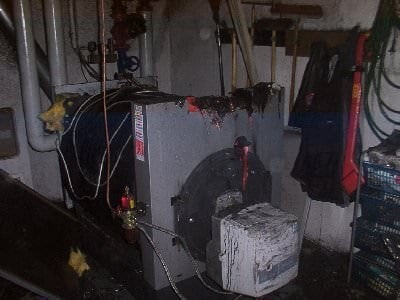 Aus bislang ungeklärter Ursache fing die Heizungsanlage eines Mehrfamilienhauses Feuer. Der zufällig in der Tiefgarage anwesende Hausmeister hörte verdächtige Geräusche und sah aus dem Heizungskeller Brandrauch. Er betätigte den Notausschalter, schloss die Türe auf und verständigte die Feuerwehr.