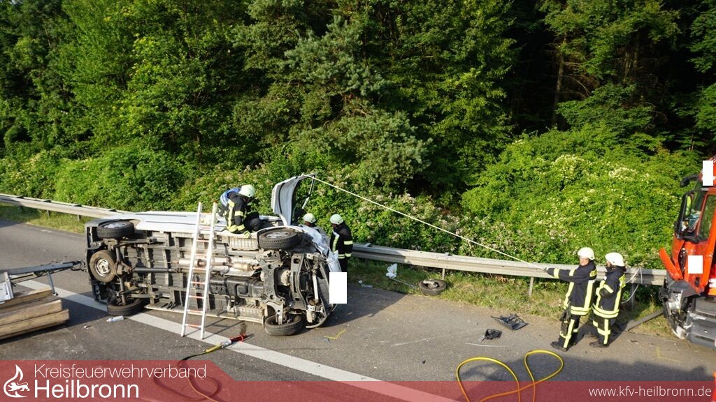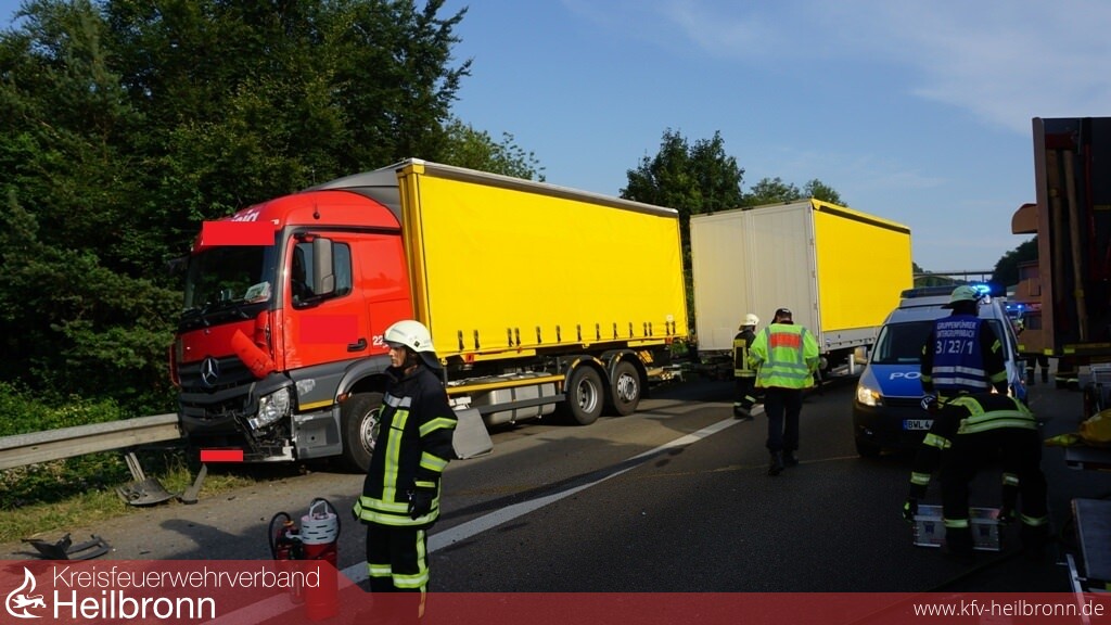Die Feuerwehr Untergruppenbach wurde auf die BAB 81 in Fahrtrichtung Würzburg zu einem Verkehrsunfall zwischen zwei LKW alarmiert. Eine Person war in einem Kleintransporter eingeklemmt.