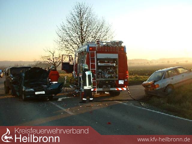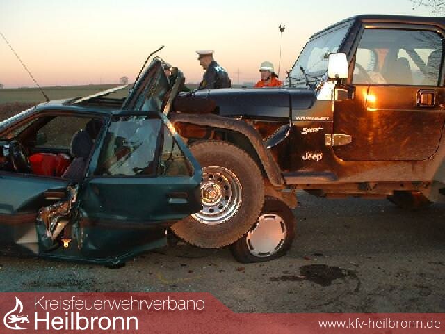 Auf der K2001 zwischen Oedheim und Lautenbacher Hof ereignete sich ein schwerer Verkehrsunfall, an dem 2 PKW und 1 Geländewagen beteiligt waren.
