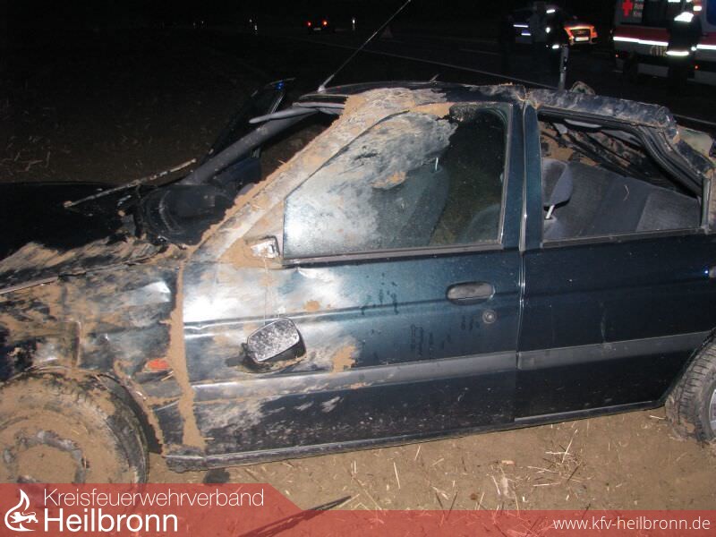 Am Samstag, den 14.02.2015, wurden wir mit dem Alarmstichwort „VU Person eingeklemmt“ um 17:48 Uhr alarmiert. Auf der K 2146 war zwischen Ittlingen und Kirchardt ein PKW aus unbekannten Gründen von der Fahrbahn abgekommen und hatte sich mehrmals überschlagen. Beim Eintreffen der Feuerwehr waren die Insassen bereits von Ersthelfern befreit worden. Die Feuerwehr versorgte die beiden Verletzten bis zum Eintreffen des Rettungsdienstes, stellte den Brandschutz sicher und reinigte, nach Freigabe durch die Polizei, die Straße. Um 18:55 Uhr war für uns der Einsatz beendet.