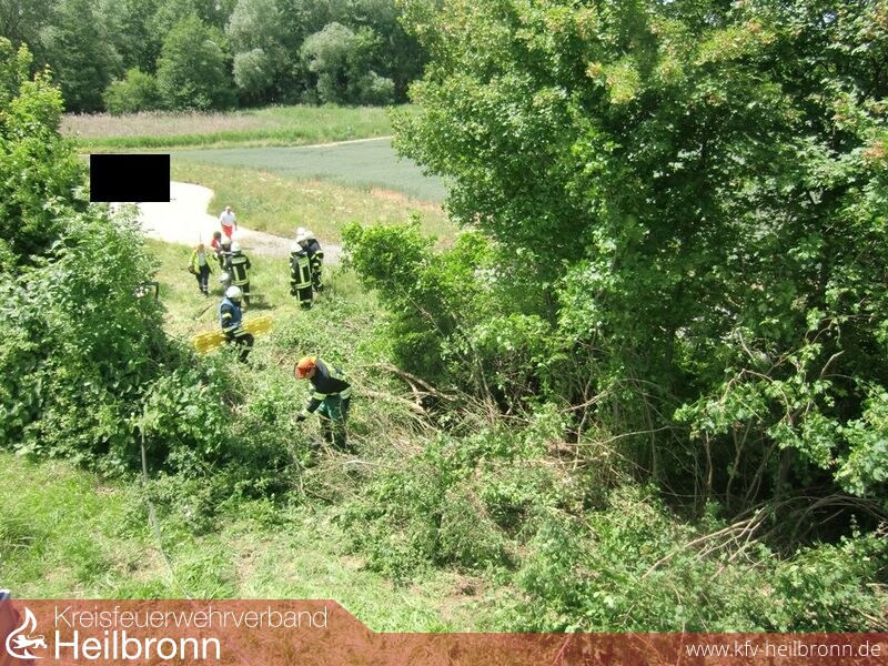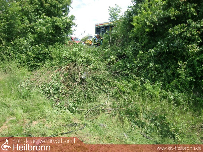 Ein PKW war aus bislang ungeklärter Ursache von der Fahrbahn abgekommen durchbrach ein Dickicht und überschlug sich hierbei. Das Fahrzeug kam in einem Entwässerungskanal zum Liegen. Die zunächst eingeklemmte Person konnte sich bis zum Eintreffen der Rettungskräfte selbst aus dem Fahrzeug befreien.