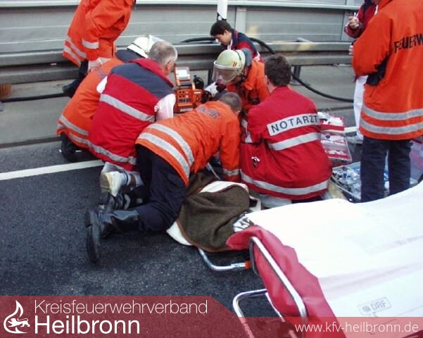Auf der Pichterichbrücke kam es zu einem Frontalzusammenstoß zwischen zwei PKW und einem LKW. Hierbei wurde eine Person in ihrem PKW eingeklemmt. Die eingeklemmte Person wurde unter Anwendung von hydraulischen Rettungsgeräten aus ihrer Notlage befreit und dem Rettungsdienst übergeben. Die beiden schwerverletzten Personen wurden von der Feuerwehr bis zum Eintreffen des Rettungsdienstes versorgt. Ausgelaufenes Motorenöl wurde aufgenommen und die Batterien der Unfallfahrzeuge abgeklemmt.