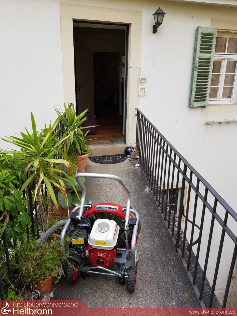 Da das Wohngebäude durch den Brand des Wäschetrockners und durch das Löschpulver des Feuerlöschers verraucht, bzw. vernebelt war, erfolgte eine Überdruckbelüftung des Gebäudes. Von einem Trupp unter Atemschutz wurden im Laufe des Einsatz mehrfach Kontrollen mit der Wärmebildkamera durchgeführt.