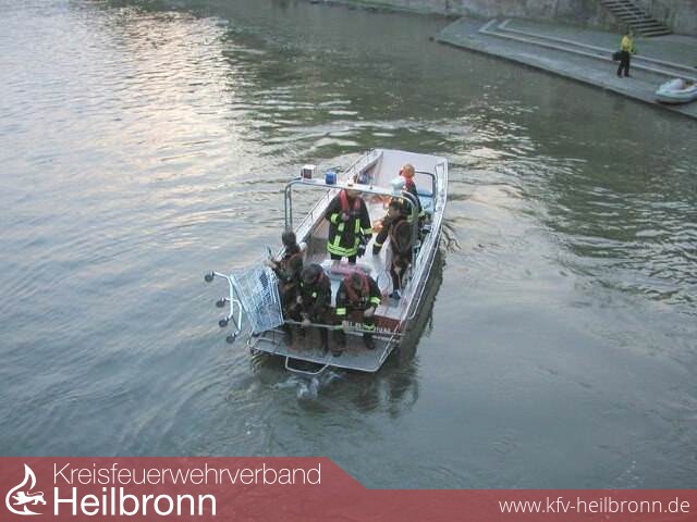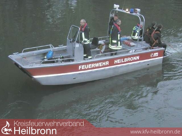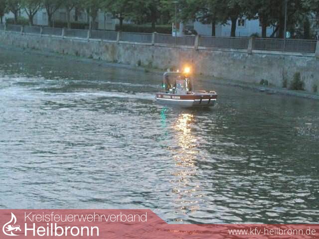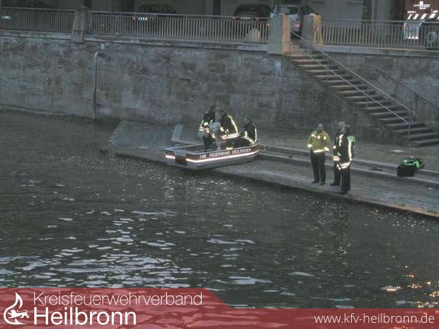 Die Feuerwehr Heilbronn rückte darauf hin mit dem Wasserrettungszug sowie einem Gerätewagen-Licht zur gemeldeten Einsatzstelle aus. Sofort gingen zwei Taucher in Bereitstellung. Die Einsatzstelle wurde von beiden Uferseiten sowie von der Götzenturmbrücke ausgeleuchtet. Zum großflächigen Absuchen des Neckars kamen zwei Boote und ein Suchgerät in den Einsatz.