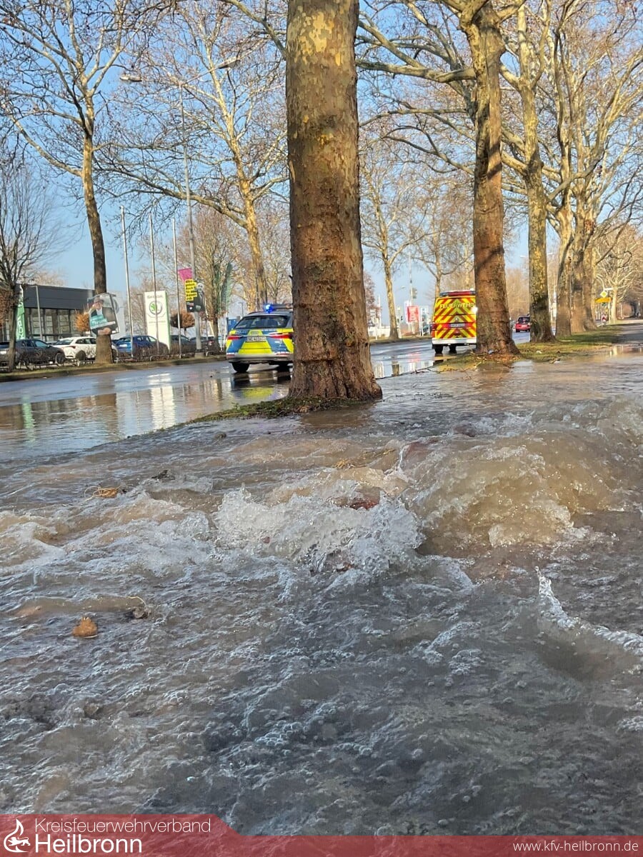 Am gestrigen Sonntag ereignete sich gegen 12.30 Uhr ein Wasserrohrbruch in der Neckarsulmer Straße. Größere Mengen Wasser flossen vom Bereich des angrenzenden Fußgänger- und Radwegs auf die Fahrbahn. Hierbei wurden auch Teile des Pflasterbelags unterspült und beschädigt.