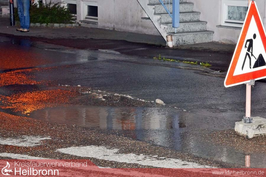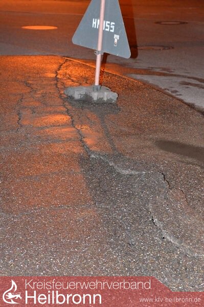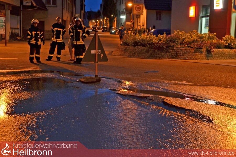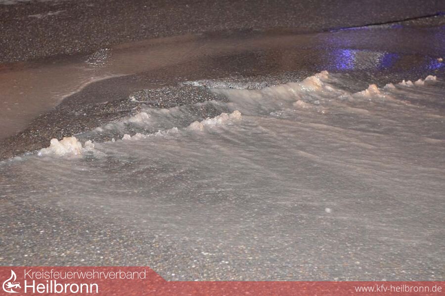 Wegen einem Wasserrohrbruch musste am späten Donnerstagabend die Pfaffenhofener Feuerwehr ausrücken. Vor dem Gebäude Heilbronner Straße 2, im Bereich der rechtwinkligen Kurve der Ortsdurchfahrt, im Kreuzungsbereich von Keltergasse und Hauptstraße, ist ein Schaden an der Hauptwasserleitung entstanden. Der Druck des in gewaltiger Menge ausströmenden Wassers war so groß, dass auf einer Länge von etwa fünf Metern der Asphalt der Fahrbahn aufgerissen und hochgedrückt wurde. Es bestand die Gefahr, dass die die Fahrbahn an der Stelle unterspült und nicht mehr verkehrssicher ist. Die Feuerwehr hat deshalb zusammen mit dem Wassermeister die Schadstelle abgesperrt. Die Polizei hat zudem veranlasst, dass von der Straßenmeisterei noch in der Nacht eine Baustellenampel zur Verkehrsregelung eingerichtet wurde. Der betroffene Abschnitt der Wasserleitung wurde abgesperrt. Eine Notversorgung für die betroffenen Anwohner in der Nacht jedoch nicht mehr eingerichtet. Mit der Reparatur der Leitung wurde aber gleich am Freitagmorgen begonnen.