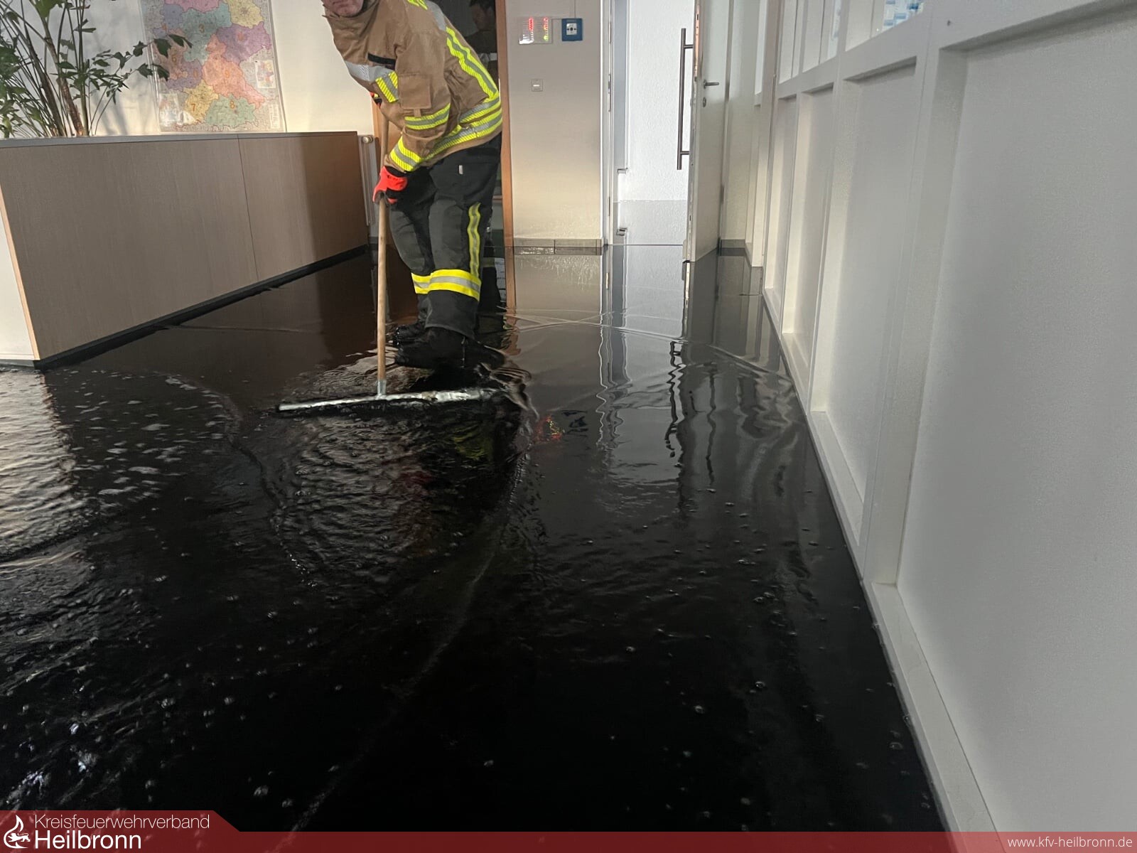 Am frühen Morgen des 10.April wurde die Feuerwehr Talheim zu einem Einsatz in einer Firma im Gewerbegebiet gerufen. Die Büroflächen der Firma waren auf einer Fläche von etwa 250 Quadratmetern bis zu fünf Zentimeter mit Wasser überschwemmt.