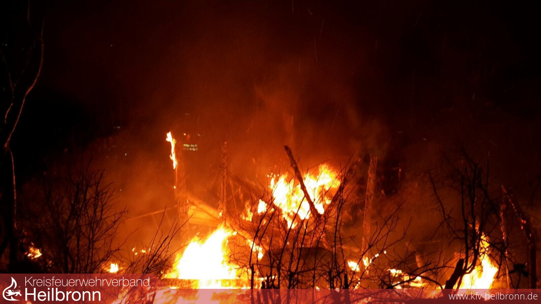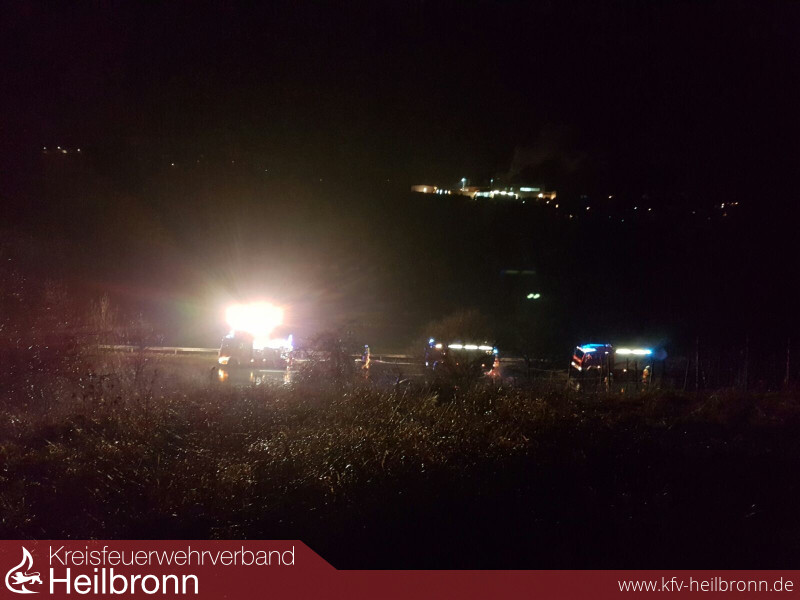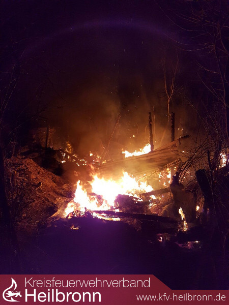 Verkehrsteilnehmer hatten die Integrierte Leitstelle (ILS) Heilbronn über Notruf 112 über einen Brand nahe der Landesstraße 1096, zwischen Siglingen und Züttlingen, informiert. Aufgrund der Meldung wurden zunächst die Einsatzabteilungen (EA) Siglingen und Neudenau alarmiert. Bei Eintreffen der ersten Kräfte stand ein altes Weinberghaus in Vollbrand. Die EA Herbolzheim wurde nachalarmiert, um mit dem Löschgruppenfahrzeug ein Pendelverkehr mit Löschwasser von einen Hydranten zum Tanklöschfahrzeug einzurichten. Der Brand wurde gelöscht, wobei der Totalverlust des Weinberghauses, dass offenbar jemandem als Wohnung gedient hatte, nicht verhindert werden konnte. Erschwerend kam hinzu, dass sich die Einsatzstelle ca. 50-60 Meter abseits der Straße in Hanglage befand.Personen kamen nicht zu Schaden.