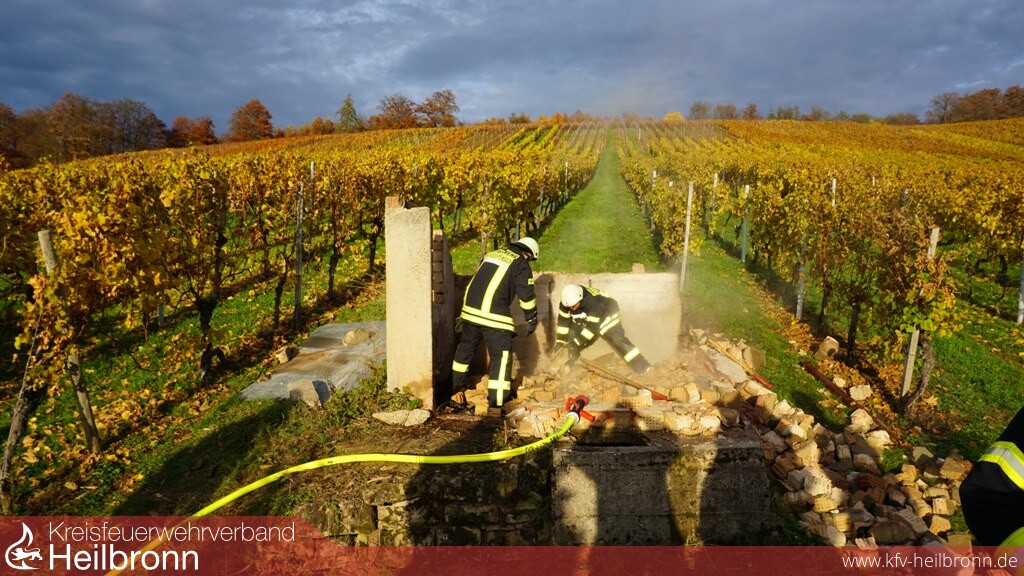 Die Feuerwehr Untergruppenbach wurde an den „Sommerberg“ im Farnersberger Tal alarmiert. Hier war es zum Brand einer gemauerten Weinberghütte gekommen.