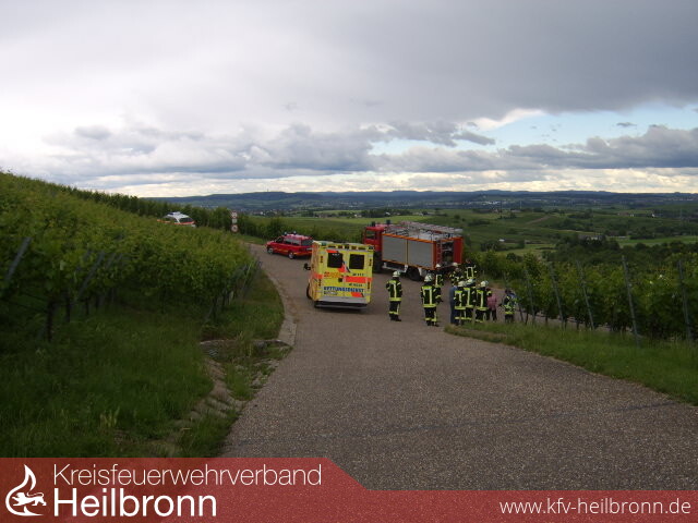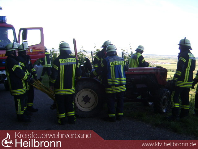 Zu einem umgestürzten Schmalspurschlepper im Gewann Sonntagsberg unterhalb des Heuchelbergs wurde die Freiwillige Feuerwehr Nordheim am Abend des 15. Juni gerufen.