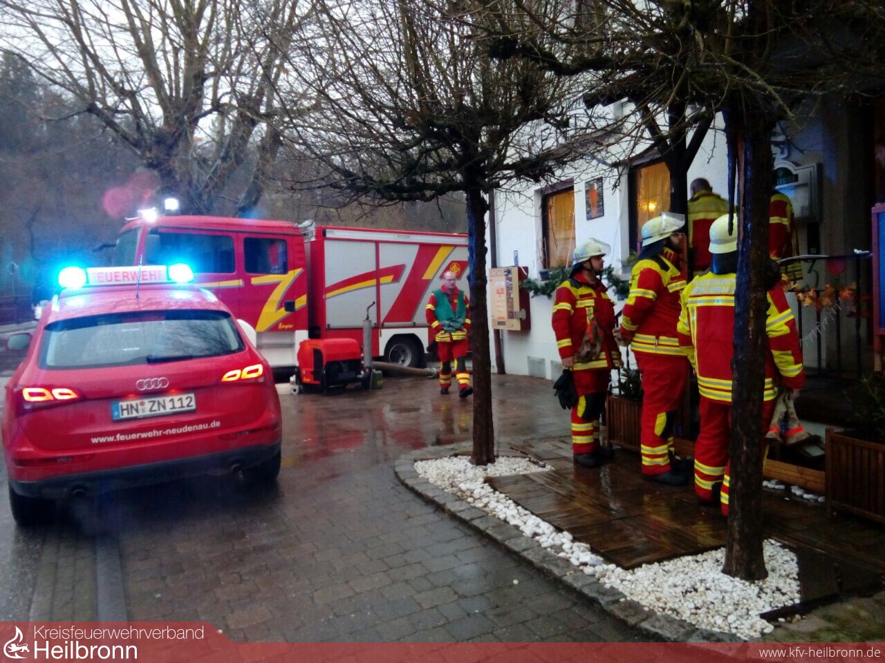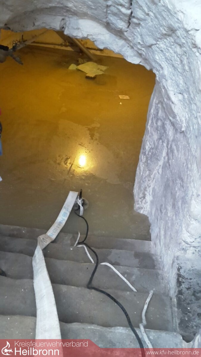 Zum dritten Unwettereinsatz wurden die Einsatzabteilungen Siglingen und Neudenau in die siglinger Brückenstraße alarmiert. Dort waren zwei Keller, auf Grund der momentanen Unwetterlage, bis zu einer Höhe von ca. 50 cm vollgelaufen. Diese wurden mittels Tauchpumpen so weit geleert, dass die Eigentümer ihren Hausrat mit Unterstützung der Feuerwehrkräfte aus den Kellerräumen retten konnten.