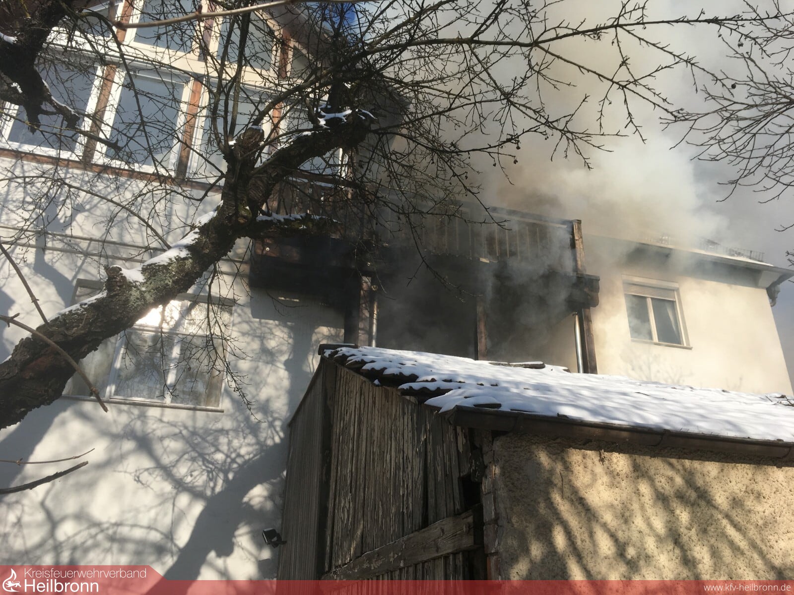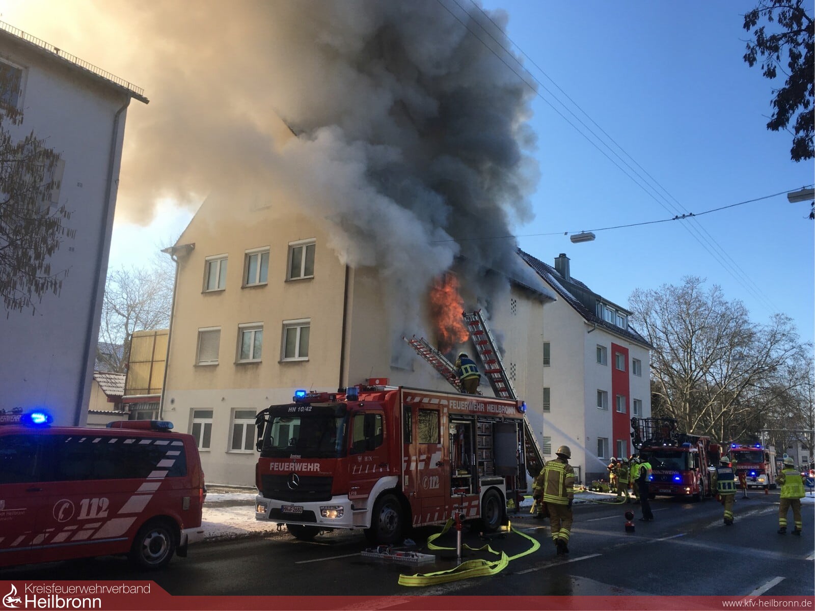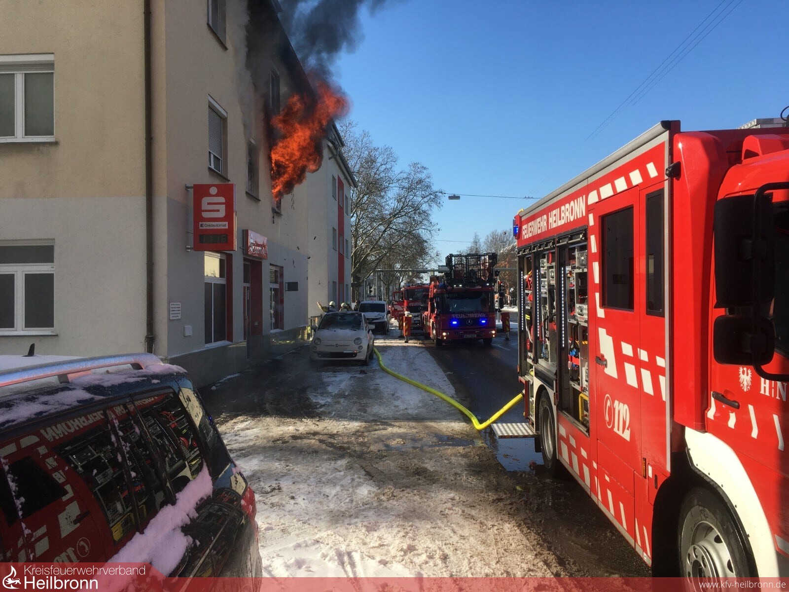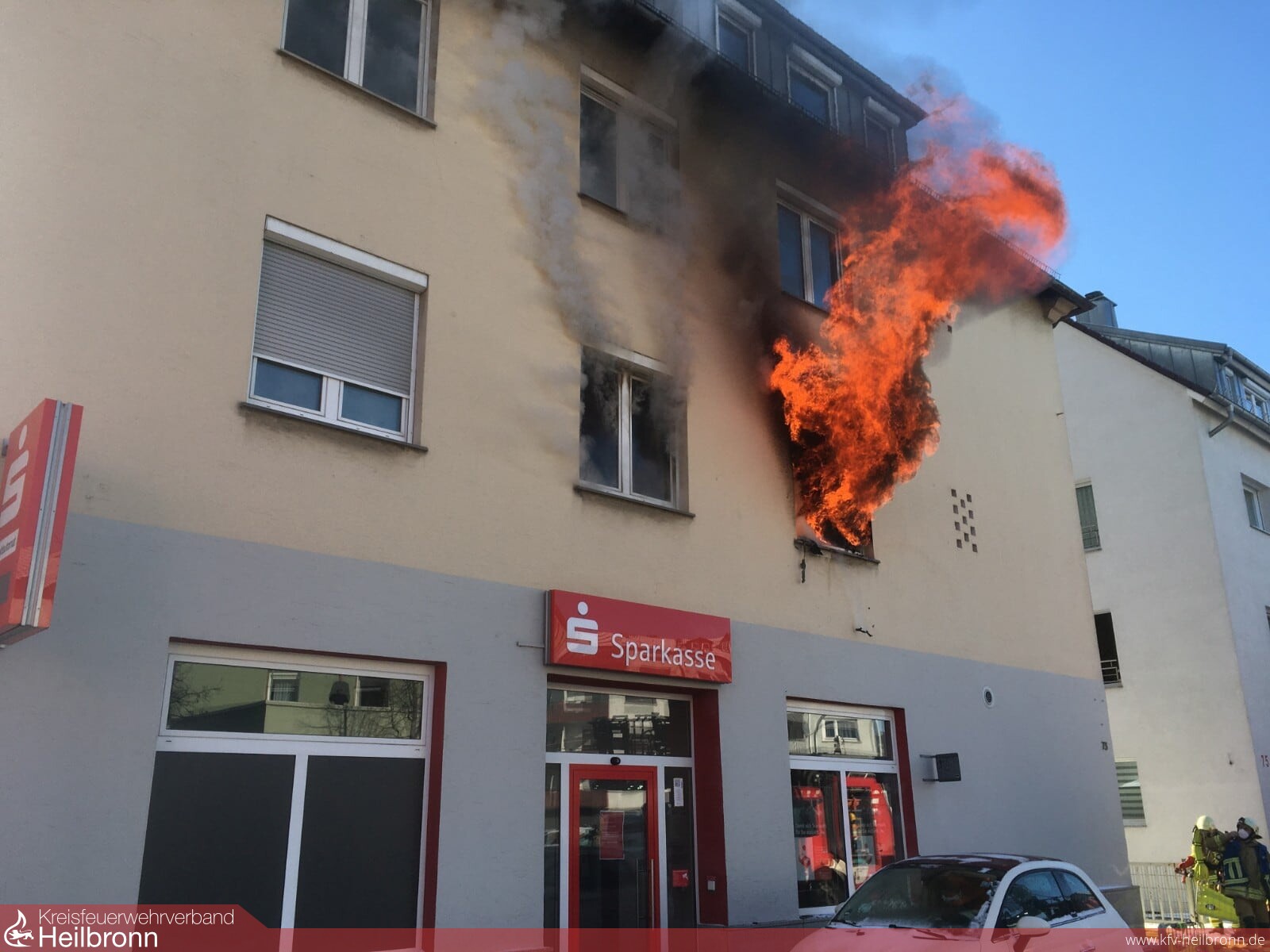 Kurz nach 11 Uhr brach ein Feuer im ersten Obergeschoss eines Wohn- und Geschäftshaus in der Sontheimer Straße aus. Beim Eintreffen der ersten Fahrzeuge an der Einsatzstelle schlugen die Flammen bereits an der Vorder- und Rückseite des Gebäudes heraus. Da zu Beginn völlig unklar war ob sich Personen in den oberen Geschossen in Gefahr befinden, wurden weitere Einheiten nachalarmiert. Durch den schnellen und massiven Einsatz der Feuerwehr konnten die Flammen auf das Brandgeschoss begrenzt werden. Eine Frau wurde auf der Gebäuderückseite vom Balkon gerettet. Durch die Befragung von zur Einsatzstelle geeilten Bewohnern war gegen 11.32 Uhr klar, dass sich keine weiteren Personen mehr in dem Gebäude aufhielten. Aufgrund der Holzbalkendecken mussten aufwändige Nachlöscharbeiten durchgeführt werden. Im Einsatz waren 47 Einsatzkräfte der Berufs- und Freiwilligen Feuerwehr mit 12 Fahrzeugen. Die Polizei sowie der Rettungsdienst mit 20 Einsatzkräften und 9 Fahrzeugen waren ebenfalls vor Ort.