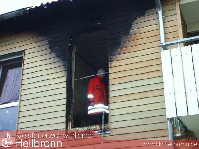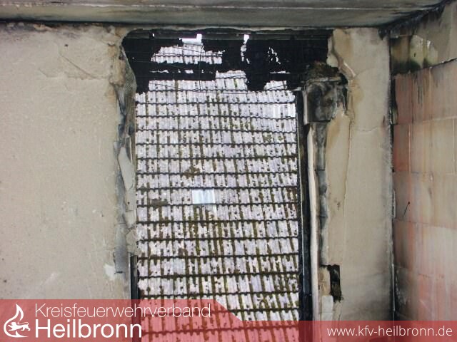 Vermutlich durch fahrlässige Kinderbrandstiftung brannte es gegen 13.25 Uhr in einer neuen Doppelhaushälfte im Sanierungsgebiet Jagstfeld.