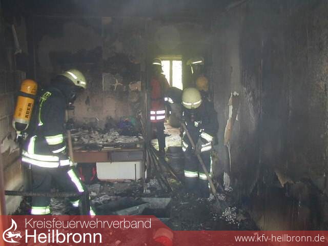 Durch die hohen Temperaturen im Brandraum breitete sich der Brand auf weitere Wohnungsteile aus und zerstörte wie auch der Brandrauch große Teile der Wohnung. Die mit insgesamt 27 Mann und 10 Fahrzeugen im Einsatz befindliche Heilbronner Wehr hatte den Brand rasch unter Kontrolle. Nach Beendigung der Löscharbeiten schätzte der Einsatzleiter der Feuerwehr vor Ort den Gesamtschaden auf ca. 140 000 Euro.