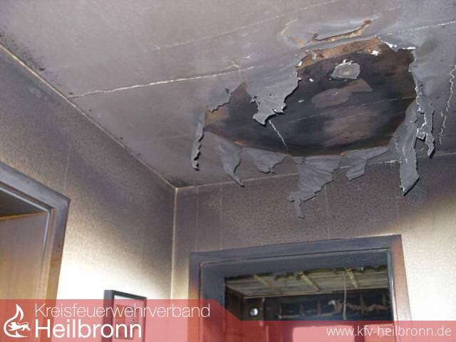 Die Tag-, Nacht- und Führungsschleife der Abteilung Obersulm wurde zu einem Wohnungsbrand um 14:37 Uhr alarmiert. Nachbarn hatten eine starke Rauchentwicklung aus dem Gebäude bemerkt und die Feuerwehr verständigt. Die Bewohner waren alle außer Haus, aus diesem Grund blieb der Brand längere Zeit unentdeckt, der Rauch hatte sich im gesamten Erdgeschoss und den Kelleräumen ausgebreitet. Die Feuerwehr hat sich mit zwei Trupps unter Atemschutz Zugang über die Terrassentür verschafft und den ausgedehnten Küchenbrand mit einem C-Rohr gelöscht. Das Gebäude wurde mit einem Lüfter belüftet, die größtenteils verbrannten Küchenmöbel wurden ins Freie gebracht, die Holzdecke musste entfernt werden um die Glutnester abzulöschen. Zur Kontrolle der noch warmen Anschlussbereiche haben uns die Kameraden aus Weinsberg mit der Wärmebildkamera unterstützt.