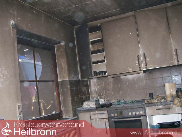 In einem Reihenendhaus mit 3 Wohnungen brannte es in der Erdgeschosswohnung.