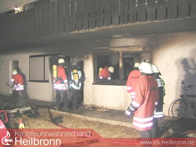 Beim Eintreffen der Feuerwehr Massenbachhausen stand die Wohnung bereits im Vollbrand. Das Feuer konnte durch den Einsatz zweier Atemschutztrupps mit zwei C-Rohren rasch unter Kontrolle gebracht werden.
