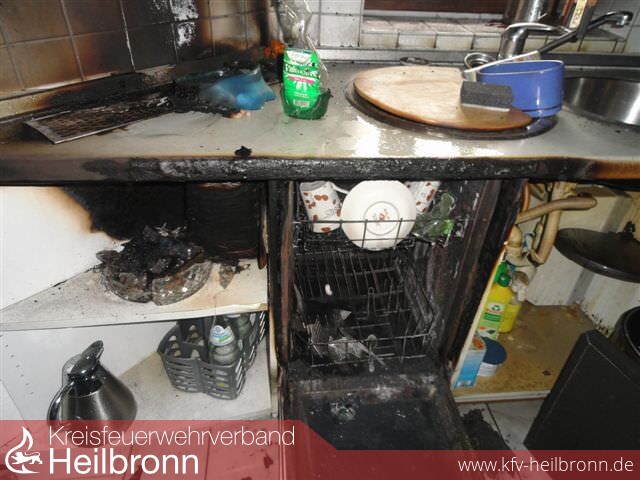 Der Brandherd (kein Feuer sichtbar) konnte mit Hilfe der Wärmebildkamera ermittelt werden. Es handelte sich um die Geschirrspülmaschine in der Küche, welche ausgebrannt war und Teile der Kücheneinrichtung in Brand gesetzt hatte.