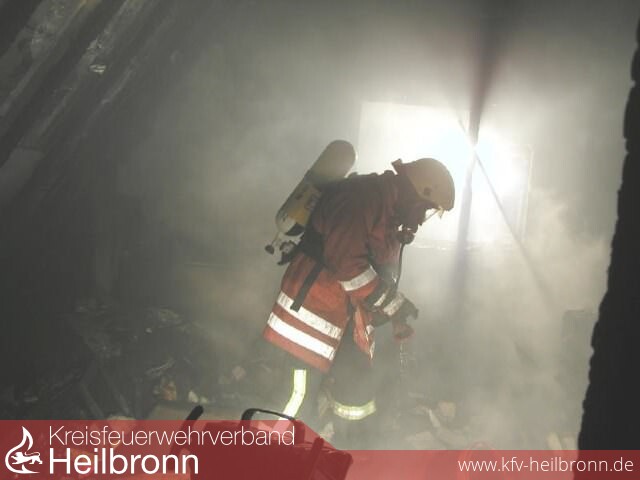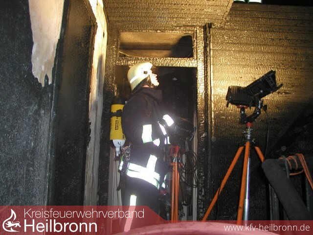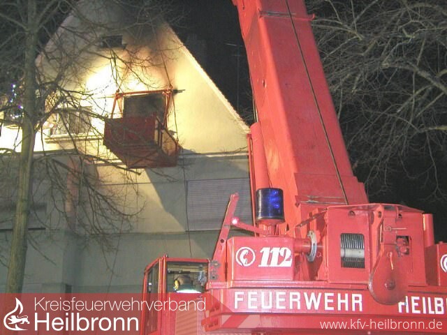 Kurz vor 23:00 Uhr rückte der Löschzug der Feuerwehr Heilbronn zu einem Wohnungsbrand in die Siebennussbaumstraße aus. Beim Eintreffen an der Einsatzstelle schlugen bereits Flammen aus zwei Fenstern einer Dachgeschosswohnung.