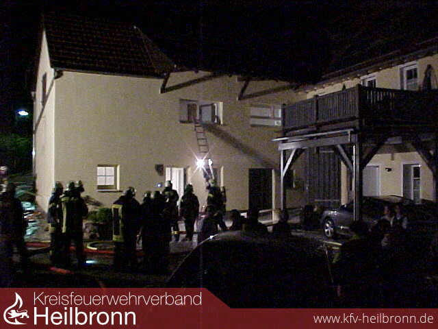 Noch bevor der Rettungsversuch der Nachbarn gelang konnte die Feuerwehr Talheim eine 2-Teilige Steckleiter stellen und die Anwohnerin retten.