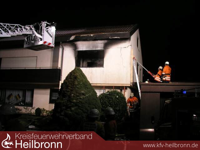 Mit zwei Trupps im Innenangriff und einem Trupp im Außenangriff über die Drehleiter gelang es eine Ausbreitung zu verhindern und das Feuer rasch unter Kontrolle zu bringen. Der hohe Sachschaden von schätzungsweise 250.000 Euro entstand aufgrund der offenen Bauweise des Wohnhauses. Sämtliche Räume wurden durch die enorme Hitze und den Brandrauch im Mitleidenschaft gezogen. Selbst an der Außenfassade entstanden Risse, so dass diese mit Rüstmaterial abgestützt werden musste.