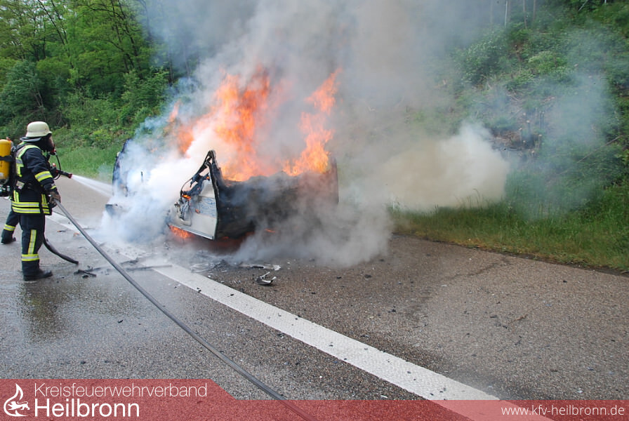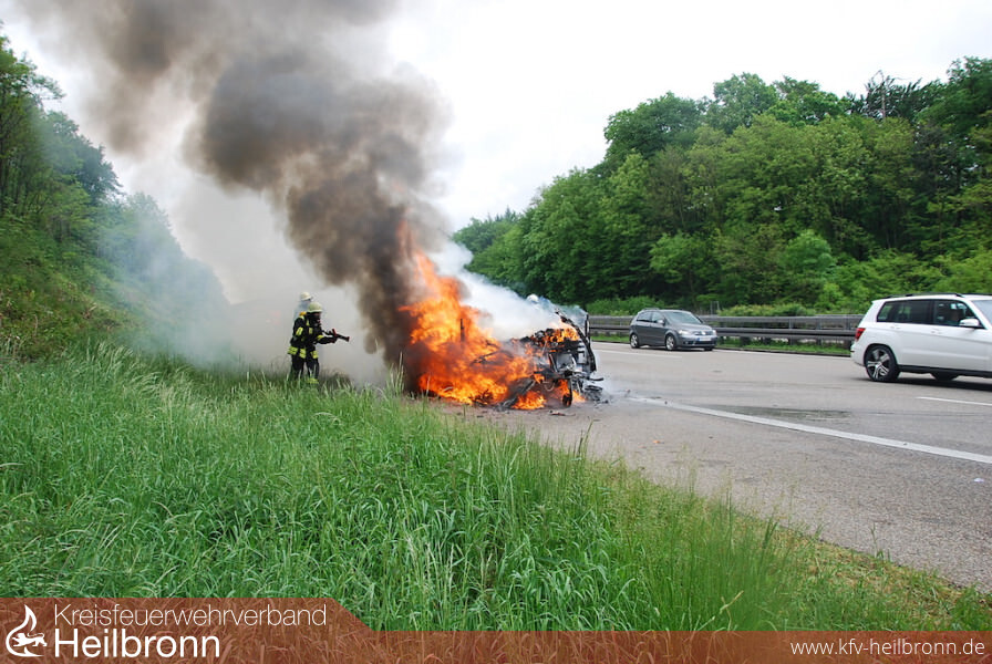 Am Pfingstmontag alarmierte die Leitstelle Heilbronn die Feuerwehr Weinsberg um 14.30 Uhr zu einem PKW-Brand auf die Autobahn 81 Fahrtrichtung Stuttgart.