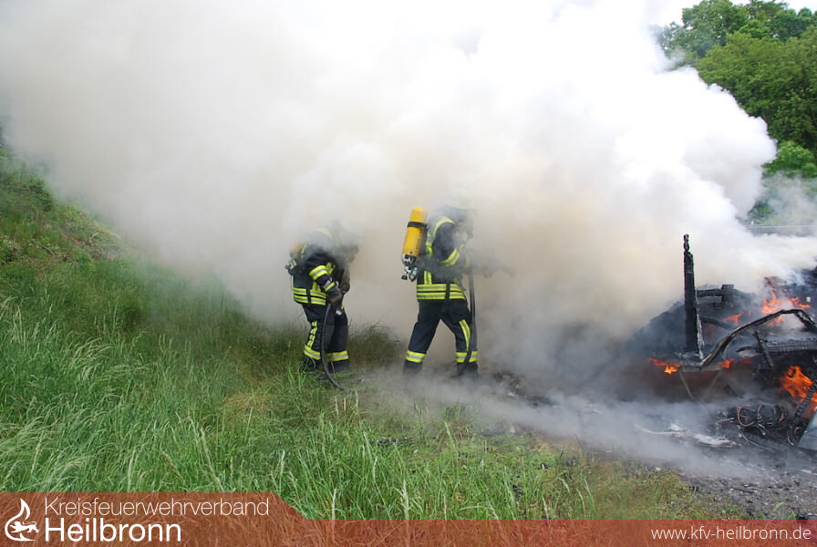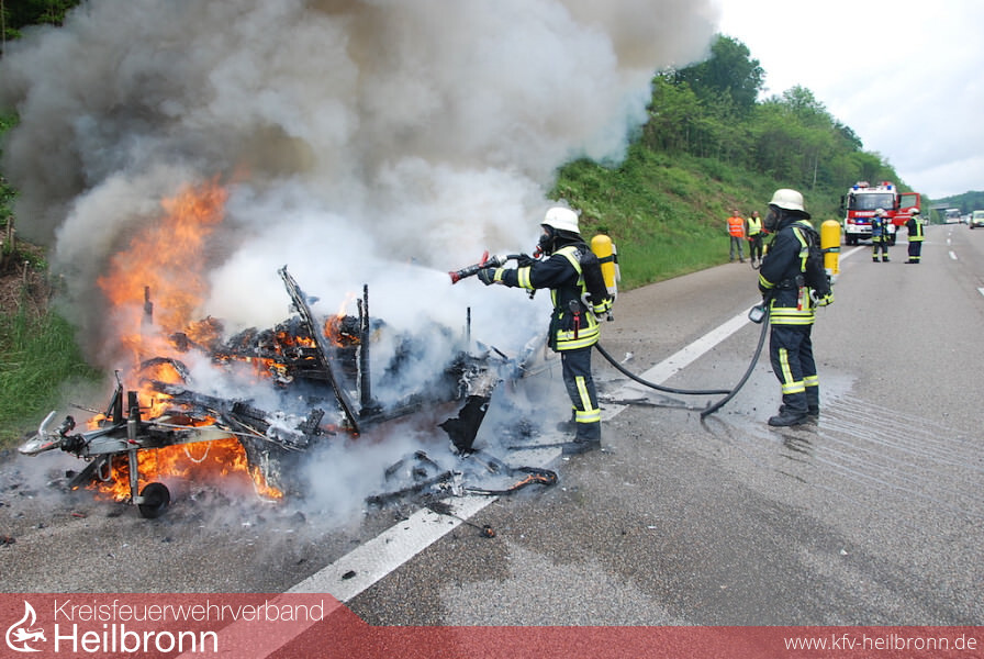 An der Einsatzstelle eingetroffen begann der Angriffstrupp mittels Schnellangriff sofort mit den Löscharbeiten unter Atemschutz. Der Eigentümer des Wohnwagens hatte vorbildlich gehandelt. Der Wohnwagen stand auf dem Standstreifen, war vom Zugfahrzeug getrennt und die Gasflasche, welche bei Wohnwagen immer eine Gefahr darstellen kann, hatte dieser bereits entfernt. Die sichtbaren Flammen waren nach wenigen Minuten gelöscht. Die Nachlöscharbeiten gestalteten sich etwas schwieriger, da die Reste des Wohnwagens mit Dunghaken auseinander gezogen werden mussten. Während des Einsatzes wurde die rechte Fahrspur gesperrt. Ausreichend Löschwasser stellte das Tanklöschfahrzeug zu Verfügung.