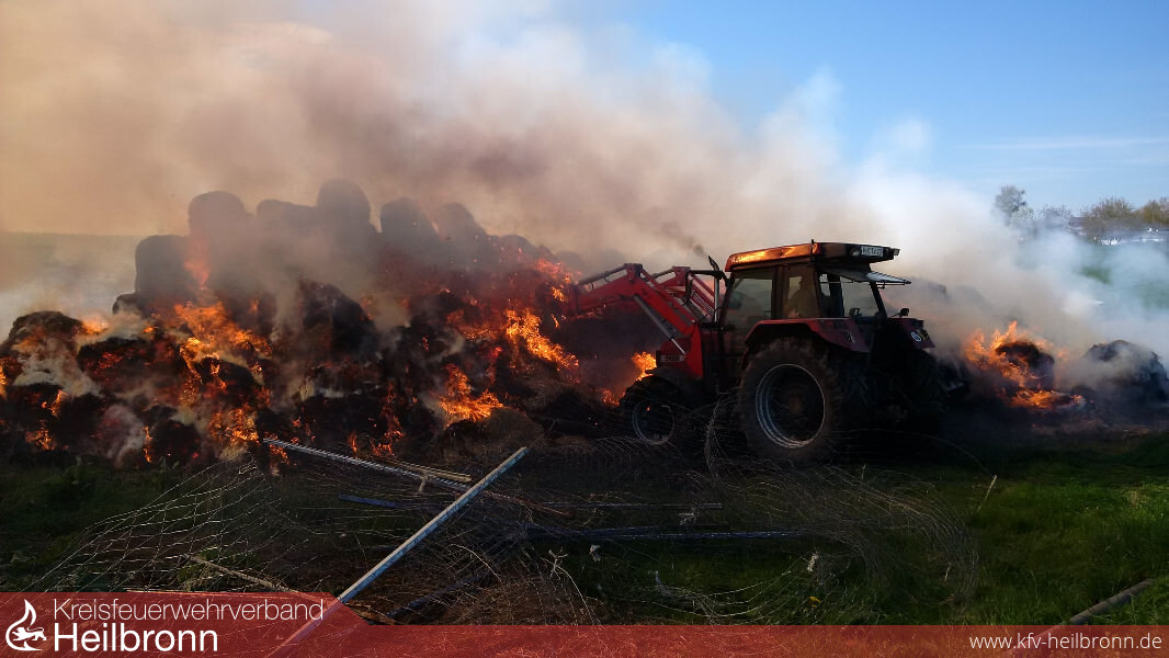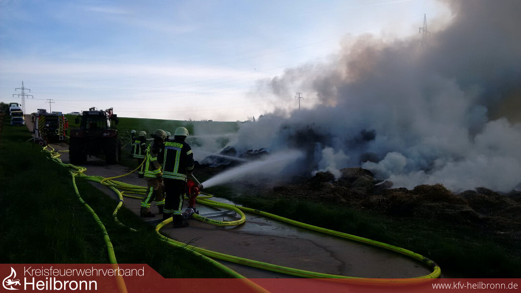 Gegen 15.00 Uhr wurden der Feuerwehr brennende Strohballen im Gewann Hexentanz in Heilbronn-Böckingen gemeldet.