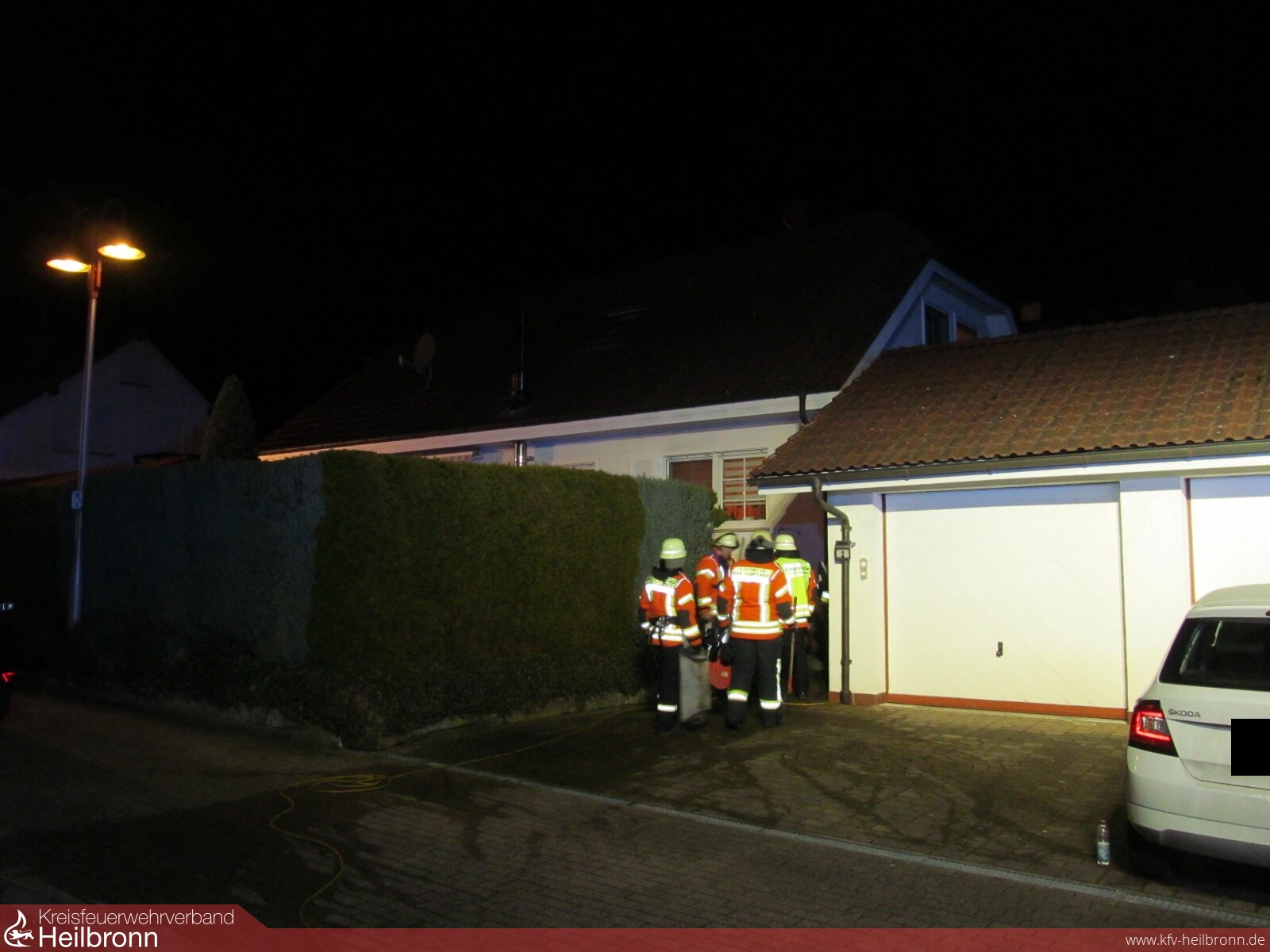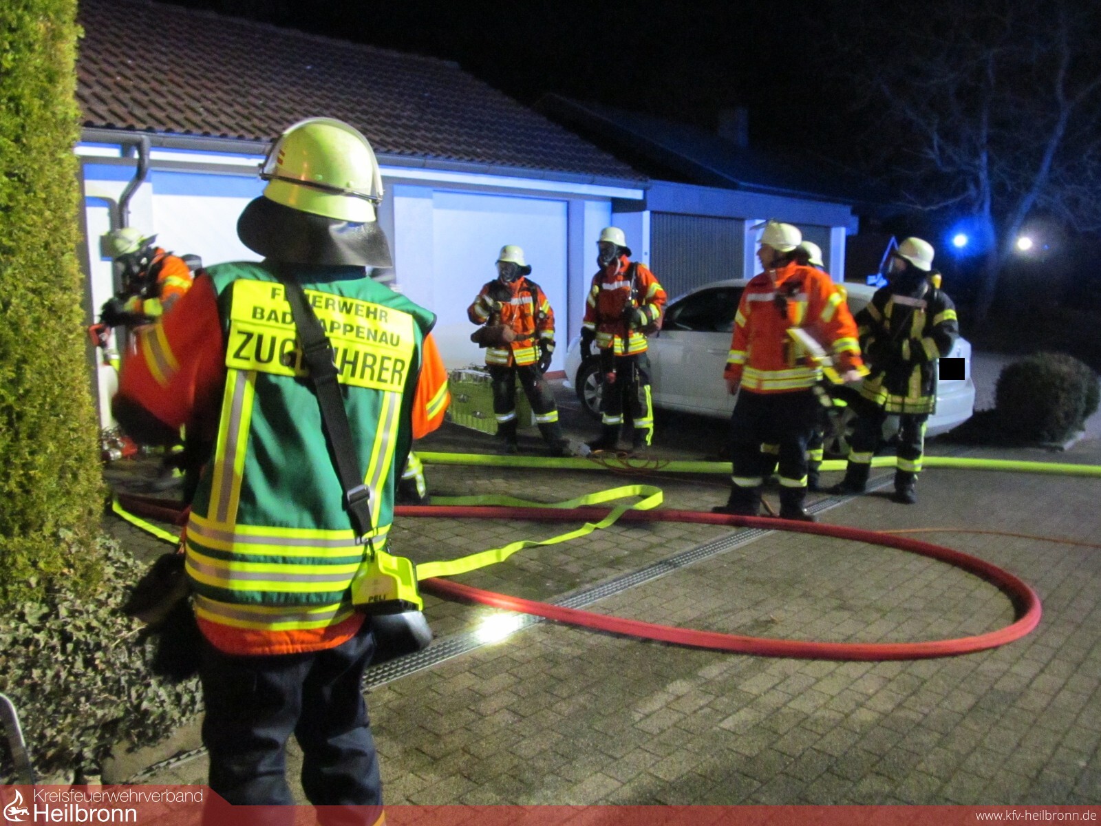 Mit dem Alarmstichwort „Zimmerbrand Menschenleben in Gefahr“ wurden die Abteilungen Fürfeld, Heinsheim, Treschklingen und Bad Rappenau alarmiert. Schon auf der Anfahrt wurde durch die Integrierte Leitstelle bestätigt, dass sich noch eine Person im Gebäude befindet. Beim Eintreffen an der Einsatzstelle fanden die Einsatzkräfte eine starke Rauchentwicklung aus dem Untergeschoss des Gebäudes vor. Der Angriffstrupp des erst eintreffenden Löschfahrzeuges der Abteilung Fürfeld verschaffte sich unter Atemschutz Zugang ins Gebäude und begann dieses nach der vermissten Person zu durchsuchen und leitete die Brandbekämpfung ein. Zeitgleich verschaffte sich der Angriffstrupp des zweit eintreffenden Löschfahrzeuges aus Bad Rappenau ebenfalls unter Atemschutz Zutritt in das Gebäude über ein Fenster. Nach kurzer Zeit konnte die Person gefunden und aus dem Gebäude gebracht werden. Dort wurde sie dann dem Rettungsdienst übergeben. Der Brandherd konnte schnell abgelöscht werden. Die Feuerwehr leitete Belüftungsmaßnahmen ein um das Untergeschoss schnell rauchfrei zu bekommen. Des Weiteren leuchtete die Feuerwehr die Einsatzstelle für die Polizei aus und räumten das Brandzimmer aus, um weitere Glutnester zu finden. Die Freiwillige Feuerwehr Bad Rappenau konnte gegen 02:30 Uhr die Einsatzstelle verlassen. Die Freiwillige Feuerwehr Bad Rappenau war mit 8 Fahrzeugen und ca. 57 Mann im Einsatz.