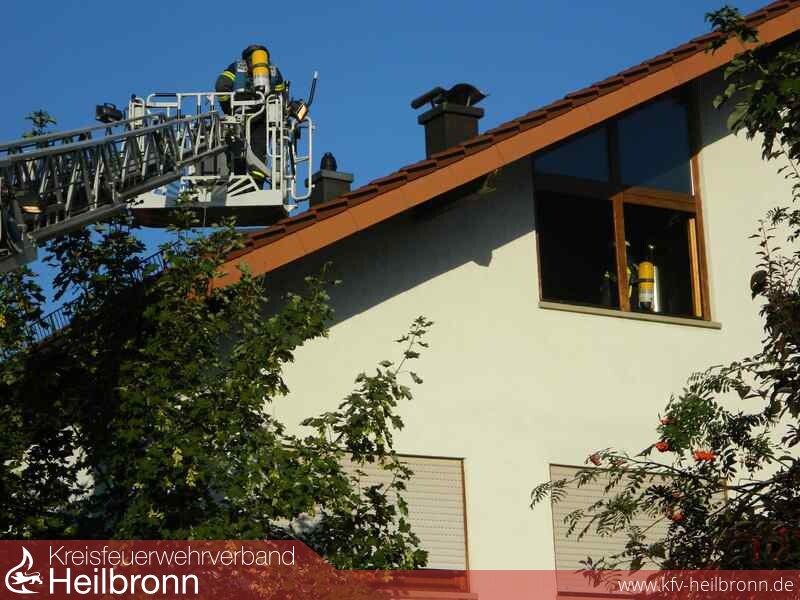 Beim Eintreffen der Einsatzkräfte vor Ort, war das komplette Dachgeschoss verraucht. Trupps unter Atemschutz gingen mit einem C-Rohr in das Gebäude vor. Ein zweiter Angriffsweg wurde über die Drehleiter von außen geschaffen.
