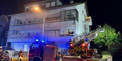 Über die Drehleiter wurden die Wohnungen und Balkone in den oberen Stockwerken kontrolliert und gesichert.