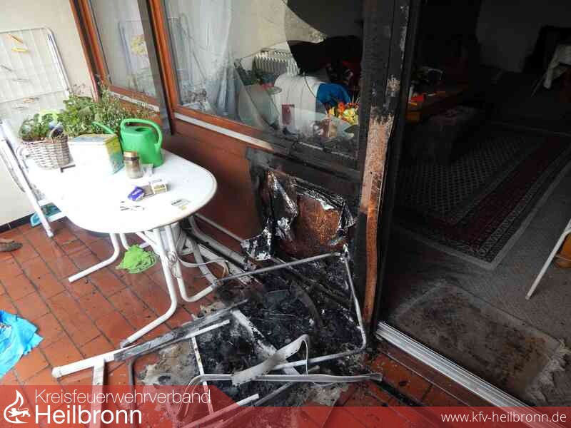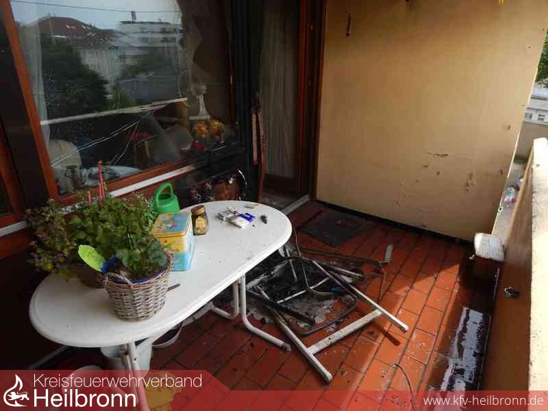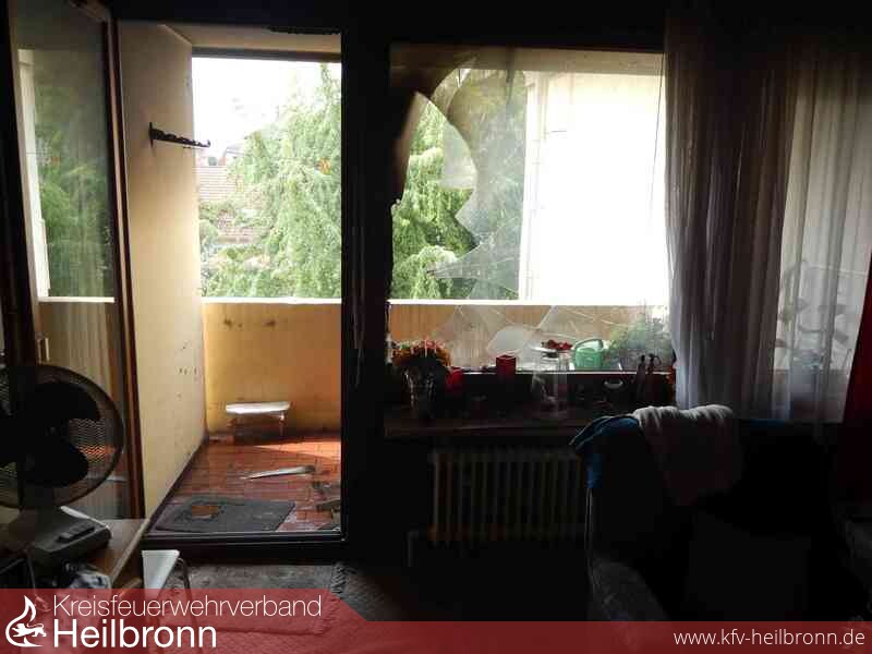 Ein Trupp unter Atemschutz konnte das aus unbekannter Ursache in Brand geratene Mobiliar auf dem Balkon rasch löschen. Aufgrund der Wärmestrahlung war die Scheibe am Balkonfenster bereits geborsten und Flammen sowie Rauch in die Wohnung eingedrungen.