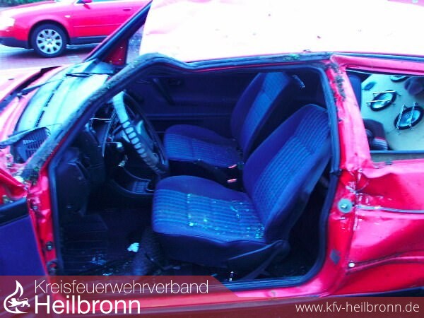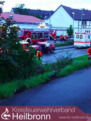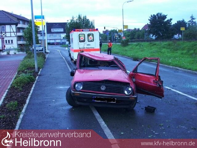 Auf dem Weg zur Arbeit kam ein junger Mann aus Fahrenbach am frühern Sonntagmorgen mit seinem Fahrzeug, VW Golf, auf der B 27, Ortseingang Bad Friedrichshall- Jagstfeld, von der Straße ab. Das Fahrzeug prallte gegen einen Lichtmasten, fuhr eine kleine Böschung hinunter, überschlug sich und kam auf der Heuchlinger Straße wieder auf den Rädern zum Stehen. Der allein im Fahrzeug befindliche, angeschnallte Fahrer, wurde eingeklemmt.