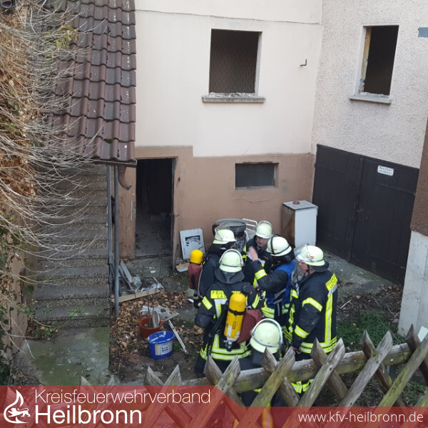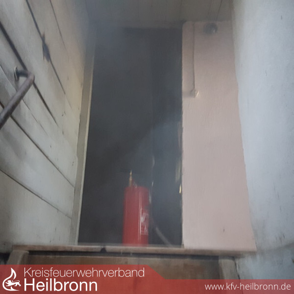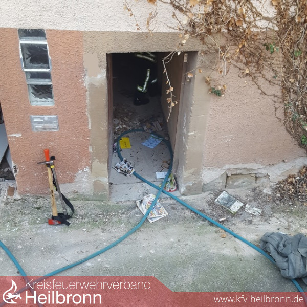 Von einem Trupp unter Atemschutz erfolgte dann mit der Kübelspritze eine punktuelle Brandbekämpfung von in Brand geratener Kleidung. Da nach dem Ablöschen der Kleidung noch immer eine Rauchentwicklung feststellbar war, erfolgte eine weitere Suche im mehrfach verwinkelten Gebäude. Hierzu musste am Gebäude eine weitere Türe geöffnet werden. In einem Raum im Erdgeschoss wurde dann ein brennender Stoss Zeitungen und Papier entdeckt. Mit der Schnellangriffeinrichtung des HLF erfolgte dann das Ablöschen des Brandherdes. Zeitgleich wurde eine Überdruckbelüftung des Untergeschoss durchgeführt.