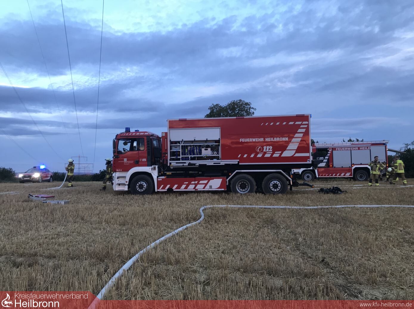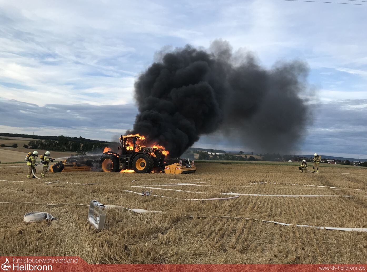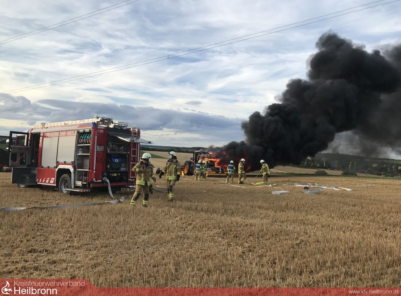 Nur 12 Minuten versetzt brannten gestern Abend zwei Fahrzeuge in voller Ausdehnung . Der Halbzug hatte gerade einen Brandmeldealarm in einer Kindertagesstätte abgeschlossen, als um 19.23 Uhr ein Pkw auf der Autobahn 6 in Flammen stand. Das Feuer konnte mit zwei Rohren von der Berufsfeuerwehr sowie der Abteilung Heilbronn -Stadt-, welche die Verkehrsabsicherung übernahm, gelöscht werden. Ein wesentlich größeres Fahrzeug machte bereits um 19.35 Uhr durch eine massive Rauchsäule im Stadtteil Kirchhausen auf sich aufmerksam. Dort war ein Großtraktor mit Anbaugeräten bei Feldarbeiten in Brand geraten. Einsatzkräfte der Berufsfeuerwehr sowie von den Abteilungen Kirchhausen, Biberach und Heilbronn -Stadt- löschten die Flammen mit vier Rohren. Als Puffer zur Wasserversorgung kam der Abrollbehälter Tank/Wasser zum Einsatz, welcher im Pendelverkehr mit drei Löschfahrzeugen nachgefüllt wurde.