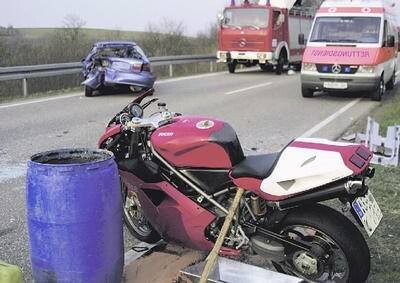 Dabei übersah sie den hinter ihr herannahenden 22-jährigen Motorrad-Fahrer aus Zaisenhausen. Er prallte mit seiner Ducati von hinten auf die linke Heckseite des Autos und stürzte.