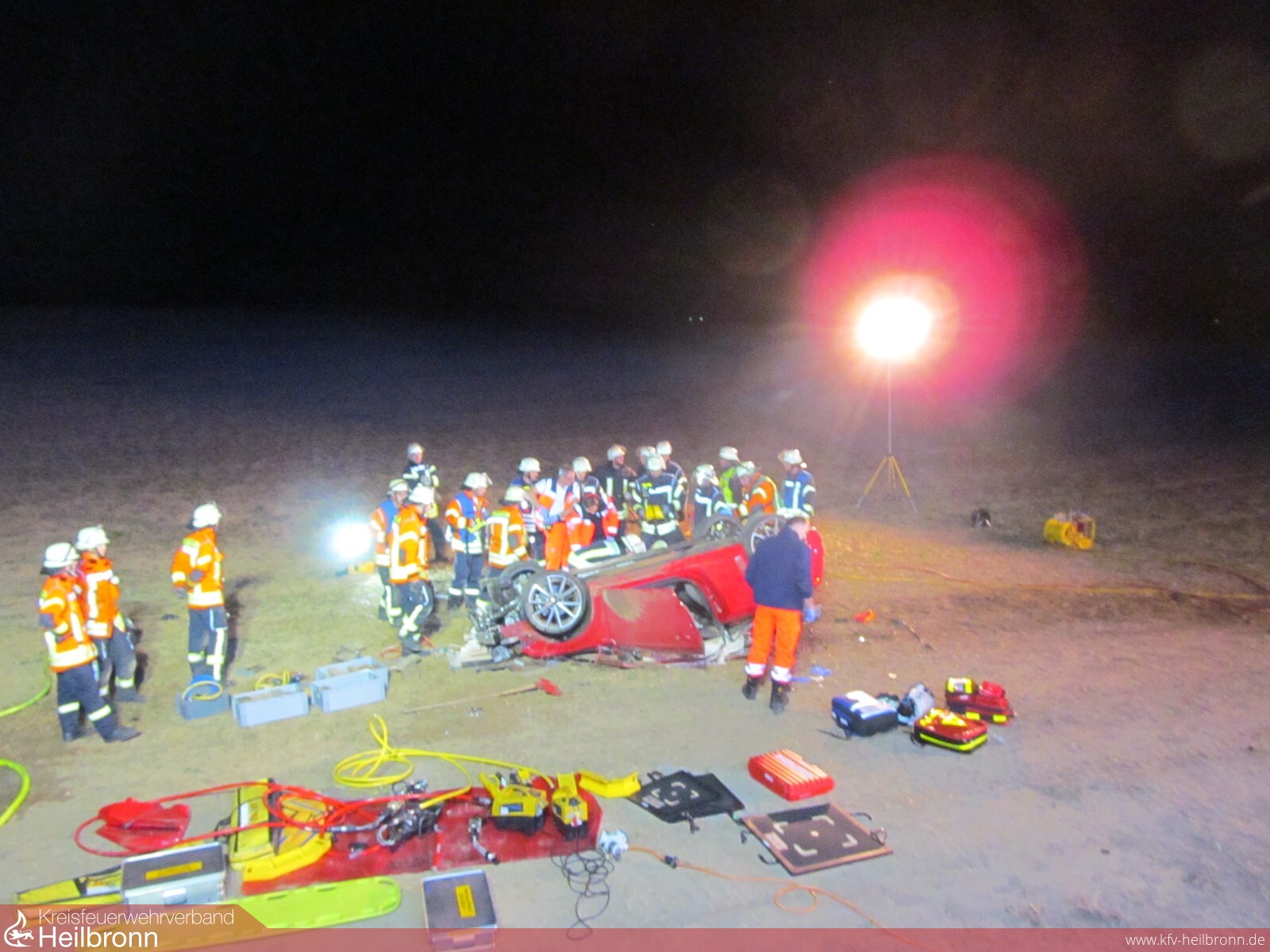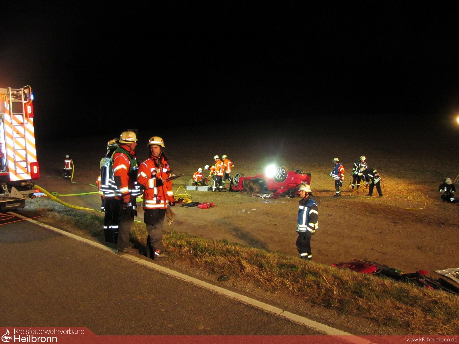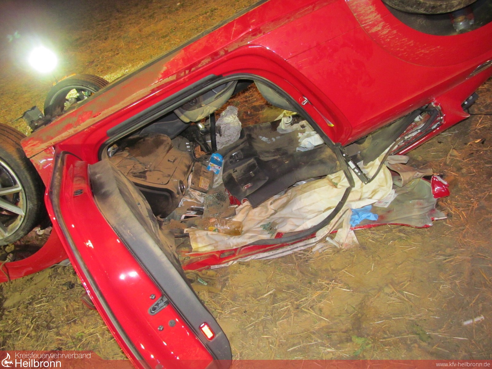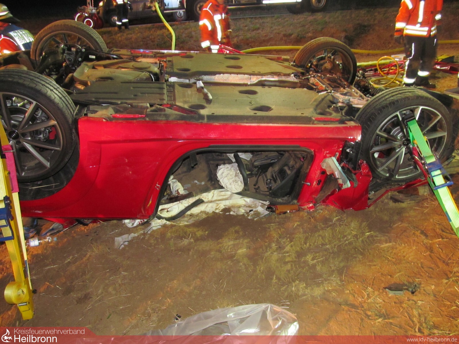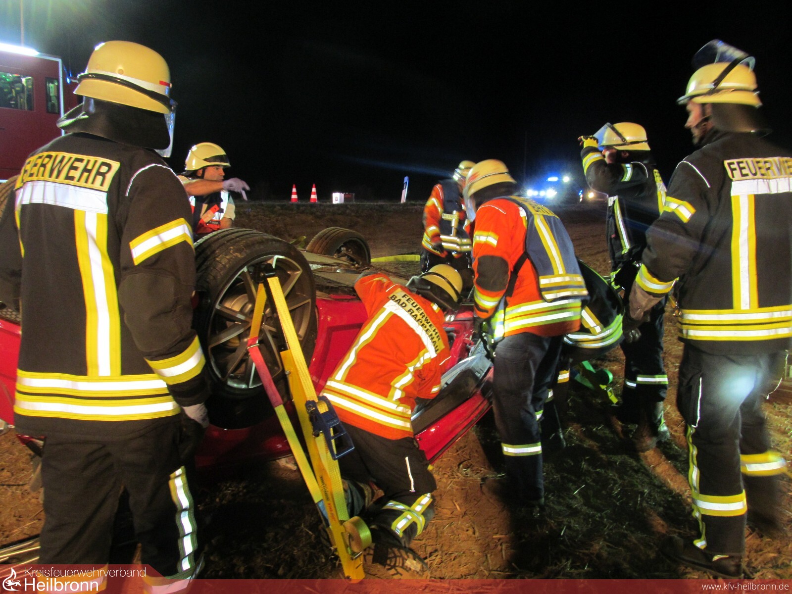 Mit dem Alarmstichwort „Verkehrsunfall PKW“ wurden die Freiwilligen Feuerwehren Bad Rappenau und Siegelsbach auf die K2043 alarmiert. Ein 20-Jähriger fuhr mit seinem Audi zwischen Siegelsbach und Babstadt, als der Wagen nach rechts von der Straße abkam, über einen Gemeindeverbindungsweg schanzte, nach 20 Meter mit der Front in einem Acker einschlug und nach weiteren 30 Meter auf dem Dach liegen blieb. Der junge Mann erlitt hierbei schwere, seine 15-jährige Beifahrerin leichte Verletzungen. Beim Eintreffen der Feuerwehr wurde die Beifahrerin bereits von Ersthelfern betreut, der Fahrer befand sich noch im verunfallten Fahrzeug. Die Feuerwehr stabilisierte den PKW, stellte den Brandschutz sicher und befreite den 20-Jährigen mithilfe von hydraulischem Rettungsgerät unter enger Absprache mit dem Rettungsdienst. Die Freiwillige Feuerwehr Bad Rappenau war mit 3 Fahrzeugen und 15 Mann im Einsatz.