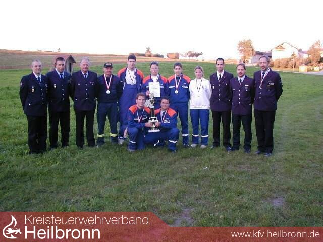 Unsere Bilder zeigen die Siegermannschaft "Bad Friedrichshall 2" mit (v.l.n.r.) Kreisjugendfeuerwehrwart Wolfgang Hagner, dem Ilsfelder Feuerwehrkommandanten Gerhard Lauterwasser und dem Vorsitzenden des Kreisfeuerwehrverbandes Heilbronn, Reinhold Korb. Außerdem auf der anderen Seite (v.r.n.l.) der Jugendfeuerwehrwart von Bad Friedrichshall, Peter Rück, "Adventure-Tour"-Organisator und stellvertretender Kreisjugendfeuerwehrwart Knut Steinbauer sowie der stellvertretende Landesjugendfeuerwehrwart Markus Hees.