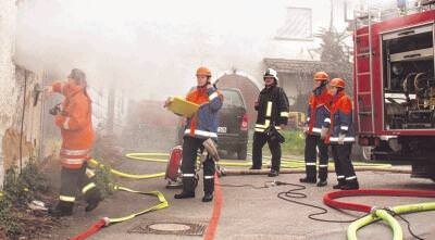Unter Kontrolle Keine drei Minuten später fährt das erste von drei Fahrzeugen vor. Die Besatzung rollt Schläuche aus, findet sogar auf Anhieb den passenden Hydranten, kämpft sich besonnen durch das brennende Haus und rettet nebenbei die drei Freunde des Hausbesitzers, der auch noch beruhigt werden muss. Nach knapp 14 Minuten ist alles vorbei, die Lage unter Kontrolle und Jugendwart Stefan Deckert zufrieden: Der Brand war mit einer Nebelmaschine simuliert.