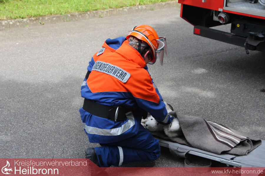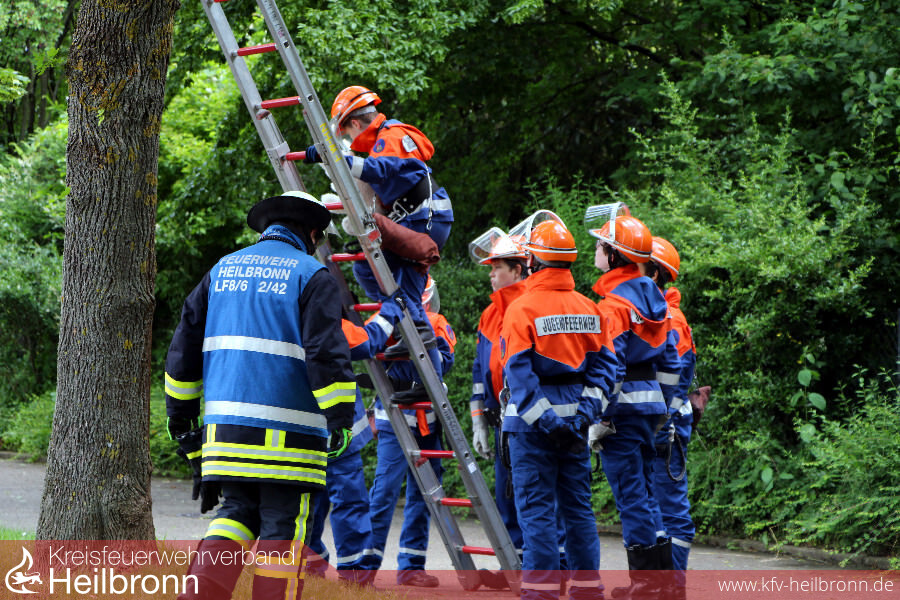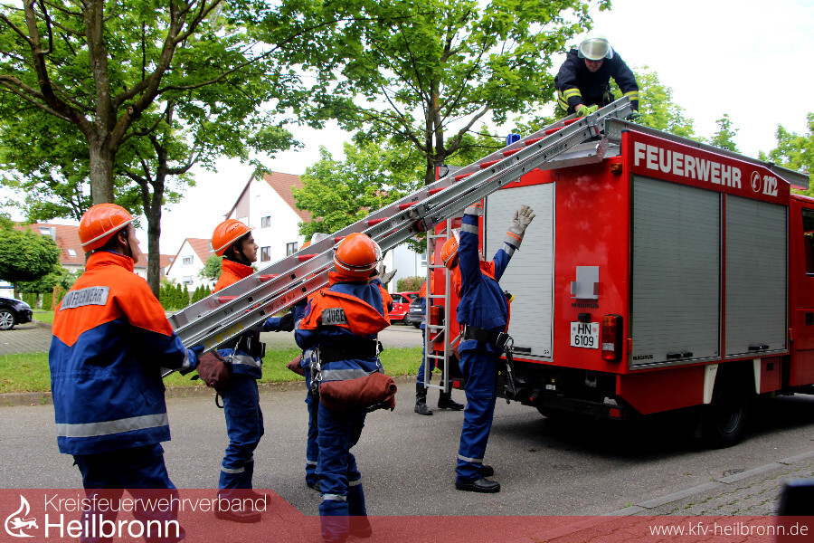 Die ersten Einsätze ließen natürlich nicht lange auf sich warten. Am Friedhof in HN-Neckargartach musste ein „Eisbär“ vom Baum gerettet werden. In HN-Biberach war ein Keller vollgelaufen und in HN-Frankenbach brannte eine Mülltonne. Alle drei Einsatzlagen konnten von den Mädels und Jungs souverän abgearbeitet werden.