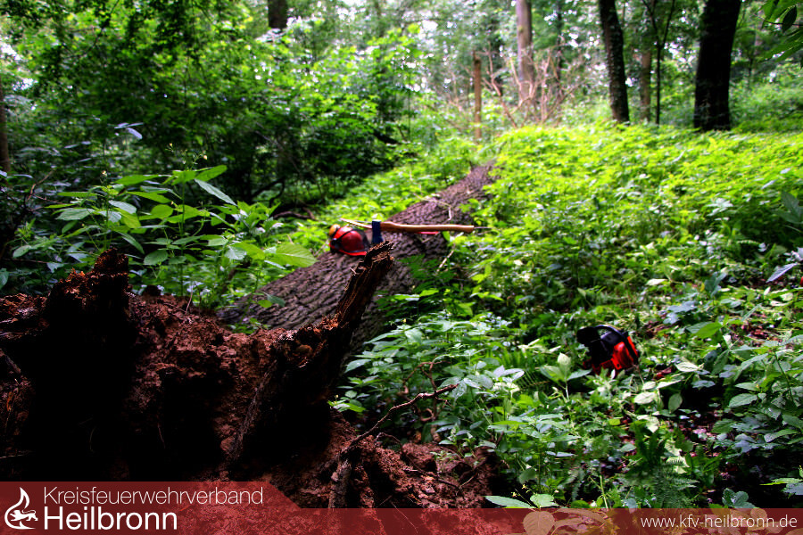 Zu einem etwas größeren Einsatz mussten zwei Löschfahrzeuge wenig später in den Frankenbacher Wald ausrücken. Ein Waldarbeiter meldete der Leitstelle, dass er seinen Kollegen vermisse, der zuvor noch einen Baum fällen wollte. Mit einer langen Suchreihe entdeckten die Einsatzkräfte erst das Equipment des Vermissten und dann schließlich auch den verletzten Waldarbeiter selbst. Schnell konnte der Verletzte medizinisch versorgt und von der Feuerwehr in Sicherheit gebracht werden.
