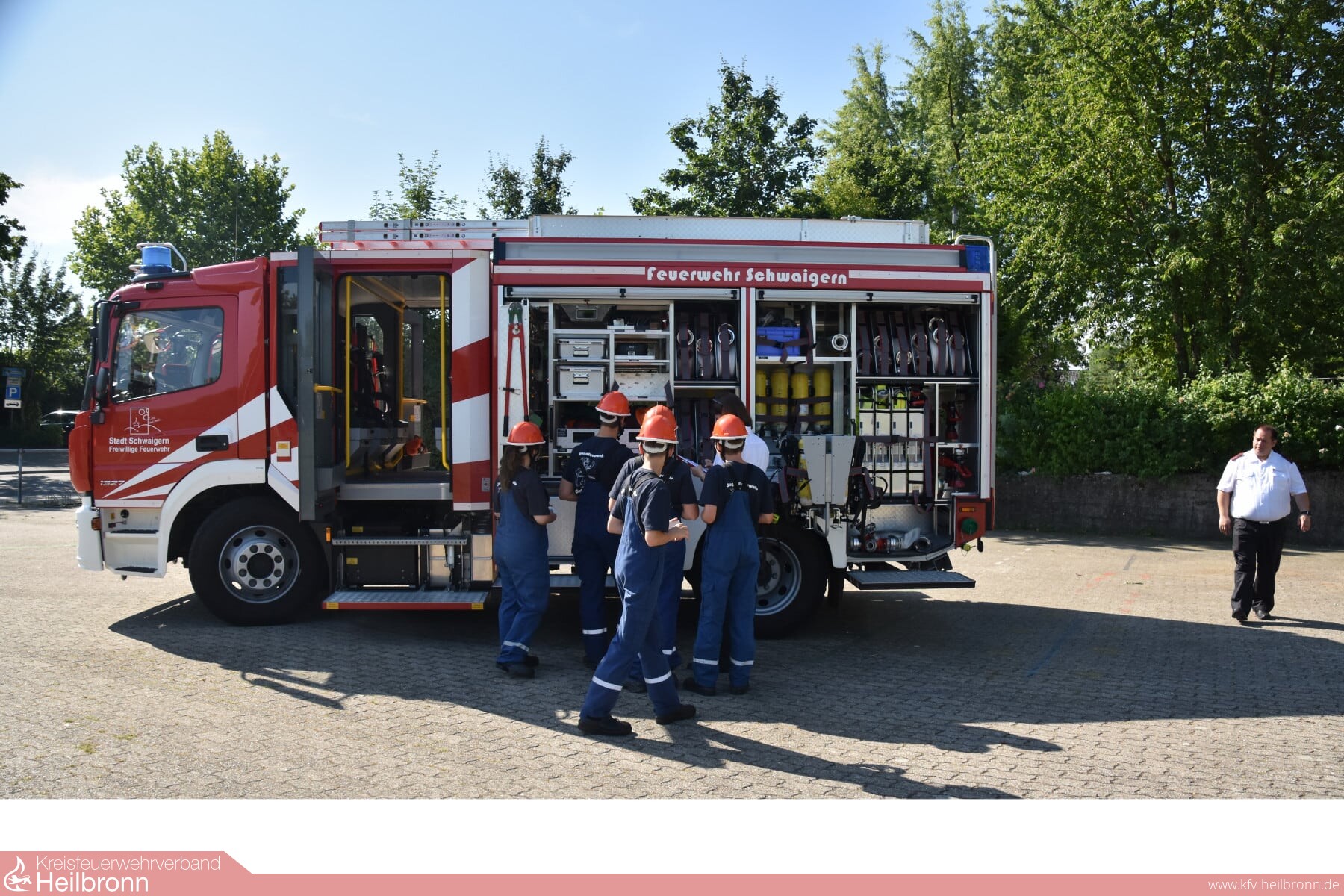 Mannschaften aus dem Landkreis Heilbronn sowie aus Ulm stellten sich am Samstagvormittag auf dem Schwaigerner Schul- und Sportgelände bei hochsommerlichen Temperaturen den Prüfungen zur Jugendflamme der Stufen 2 und 3 sowie der Leistungsspange