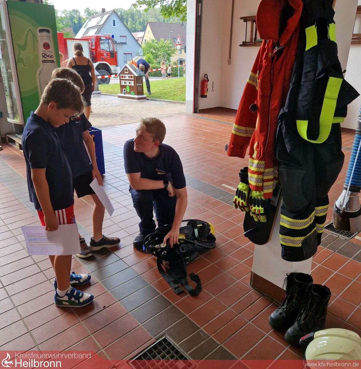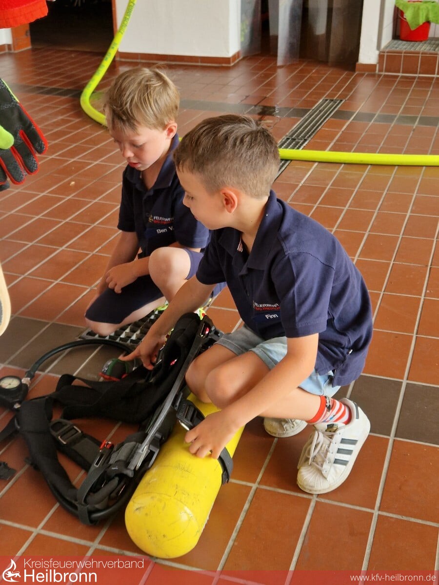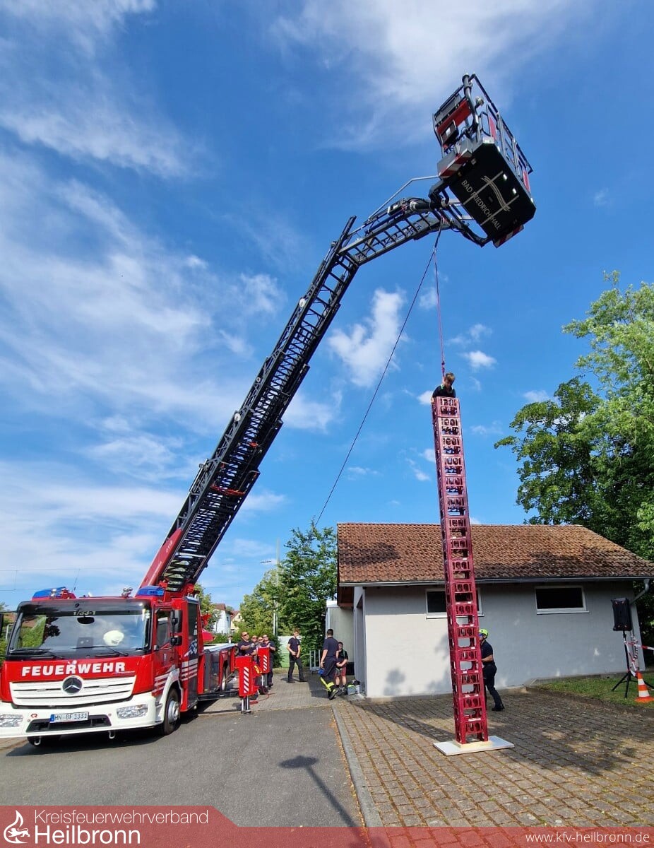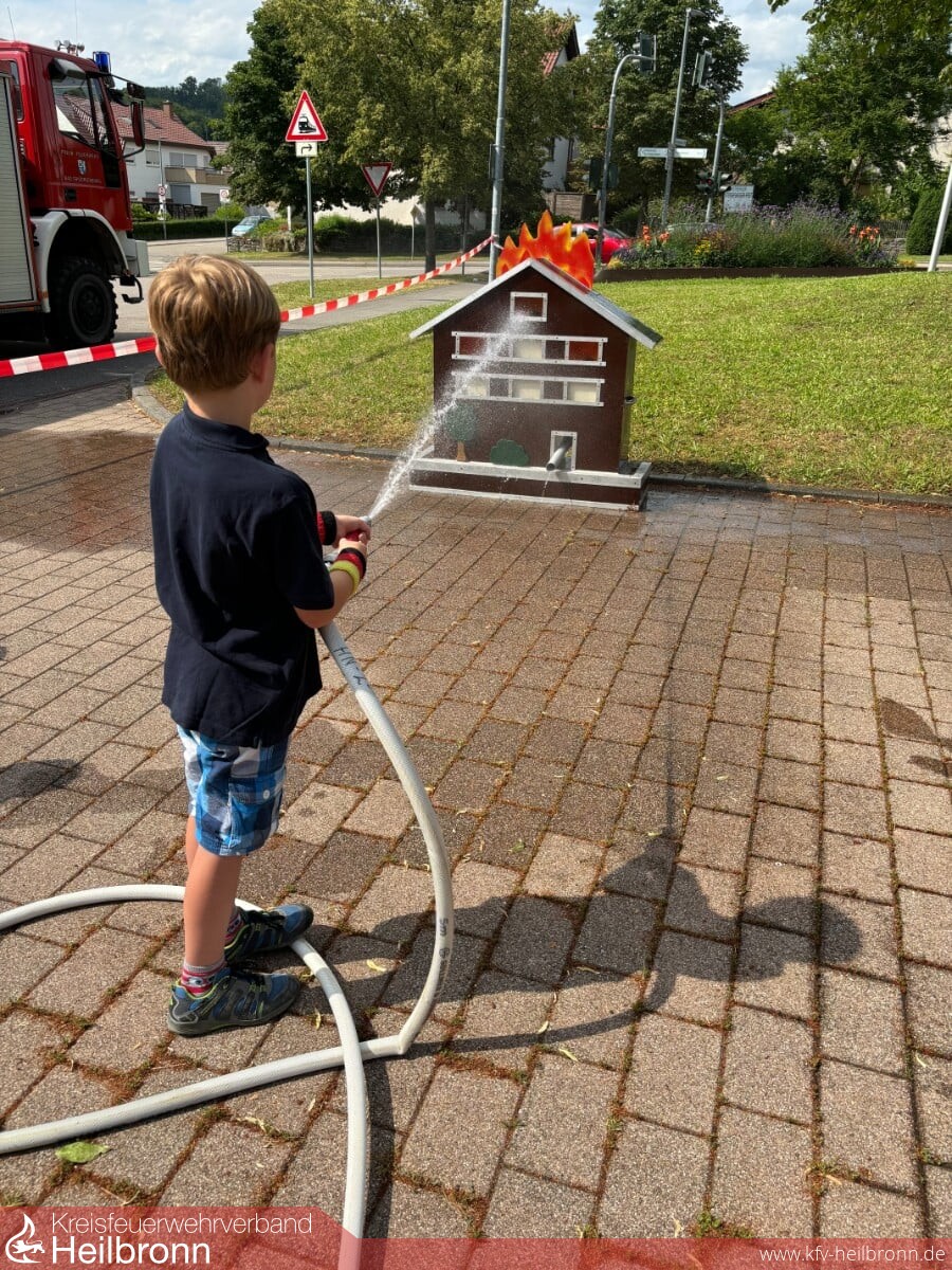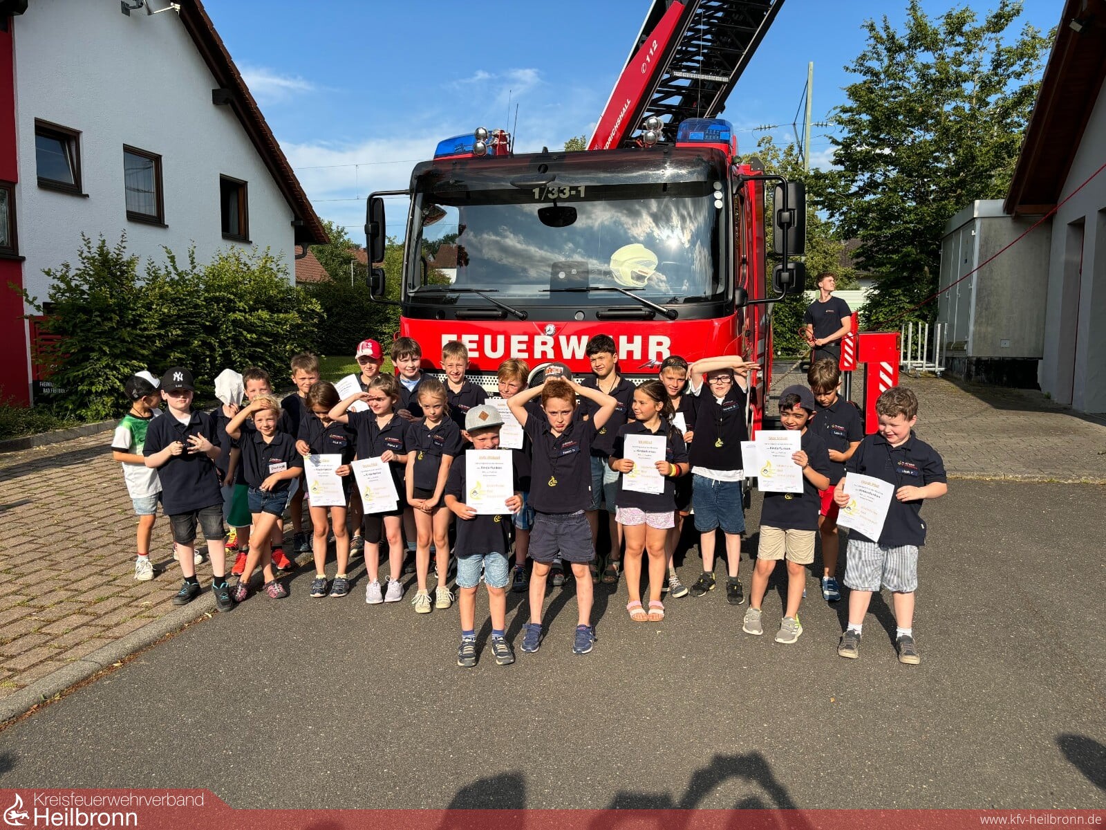 Am vergangenen Freitag war es für die Kinder der Kindergruppe der Feuerwehr Bad Friedrichshall endlich so weit, die Abnahme des Kinderfunken stand an. In den letzten Übungsdiensten wurde bereits für das Abzeichen hingearbeitet und die Vorfreude ihr angewandtes Wissen endlich zu zeigen war dementsprechend groß. Als weiteren Motivationsschub waren auch die Familienangehörige der Kinder herzlich eingeladen die Stationen zusammen mit den Kinder zu besichtigen. Nach einer kurzen Begrüßung durch die Kindergruppenleitung und einer Erklärung des Ablaufes ging es auch bereits los für die Kinder an die erste der insgesamt 7 Stationen. Angefangen von Knotenkunde, über die erste Hilfe bis hin zu dem Highlight dem Kistenstapeln mit Hilfe der Drehleiter. Auch in schwindeleregender Höhe meisterten die Kinder ihre Aufgabe mit Bravour. Die Stärkung kam durch eine Wurst im Weck ebenfalls nicht zu kurz. Nachdem alle Kinder ihre Stationen abgeschlossen hatten, wurde ihnen feierlich die Urkunde, sowie das Kinderfunkenabzeichen überreicht. Als letzter feierlicher Akt kam es noch zu einem Übertritt von der Kindergruppe in die Jugendgruppe der Jugendfeuerwehr. Auch hier gab es viel Applaus und strahlende Gesichter.