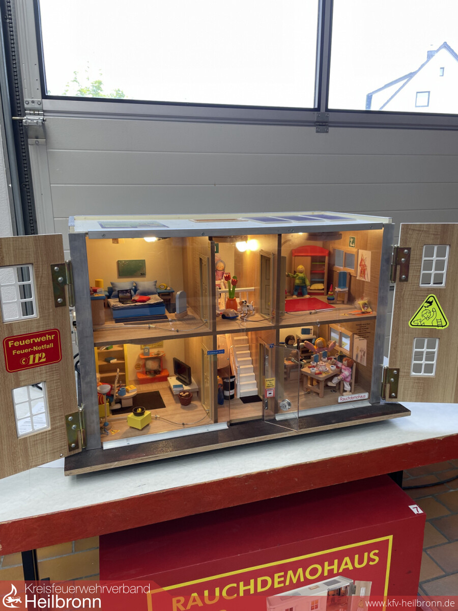 Ein besonderes Highlight war auch das Rauchdemohaus des Kreisfeuerwehrverbands, in dem die Ausbreitung von Brandrauch in einem Wohnhaus möglichst realitätsnah nachgestellt werden kann.