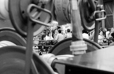 Ungewöhnlicher Blick durch Feuerwehrschläuche auf die Feuerwehrhocketse. Eingeladen hatten die Beilsteiner Floriansjünger. (Foto: Werner Kuhnle)