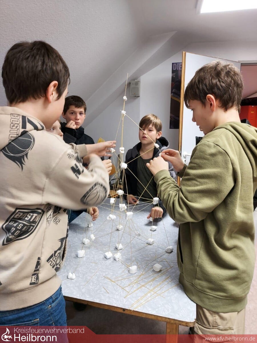 Den Auftakt bildete im Feuerwehrhaus Brackenheim ein Wettstapeln von Marshmallows, bei dem Fingerspitzengefühl und Konzentration entscheidend waren. Weiter ging es nach Hausen, wo die Jugendlichen ein feuerwehrspezifisches Quiz erwartete. Nachdem auch diese Aufgabe erfolgreich gemeistert wurde, führte die Rallye nach Botenheim. Dort bestand die Herausforderung darin, einen Ball mithilfe der Ausrüstung aus dem Feuerwehrauto von Punkt A nach Punkt B zu transportieren, ohne den Ball mit dem eigenen Körper zu berühren. Mit Kreativität, Teamarbeit und einer guten Portion Einfallsreichtum lösten die Jugendlichen auch diese Aufgabe souverän.