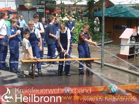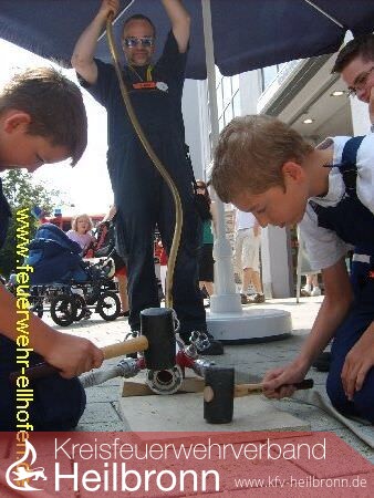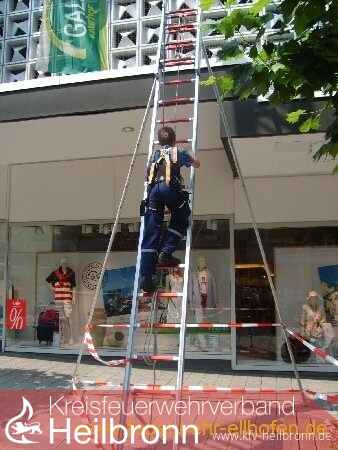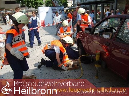 Am Samstag, 09.06.2007 fand ein Aktionstag der Galeria Kaufhof, der Feuerwehr Heilbronn und der Kreisjugendfeuerwehr in der Fußgängerzone zwischen den beiden Kaufhoffilialen in Heilbronn statt. Wir fuhren mit der Stadtbahn um 09.54 am Bahnhof Ellhofen in Richtung Heilbronn los. Nach der Anmeldung durften wir beispielsweise eine eingeklemmte Puppe unter einem Auto befreien, mit einer Leiter bis fast zum Dach eines der beiden Kaufhofhäuser steigen und Erbsen klopfen, …