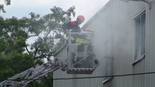 Kurz nach 13.45 Uhr kam dann auch schon der nächste Einsatz. Diesmal mussten alle Fahrzeuge ausrücken, denn es war ein Fabrikhallenbrand bei der Firma MBM, Alte Stadt 4, gemeldet. Der Einsatz wurde durch 2 vermisste Personen erschwert. Jedoch gelang es der Jugendfeuerwehr sehr schnell die Personen zu finden und zu retten. Das Feuer wurde durch die Drehleiter mit Korb (DLK), TLF und das LF 8 mittels Wasser und einem Schaumteppich gelöscht. Dies war für die Jugendfeuerwehr ein richtiger Großeinsatz. Nach Beendigung dieses Einsatzes gab es zur Stärkung Kuchen.