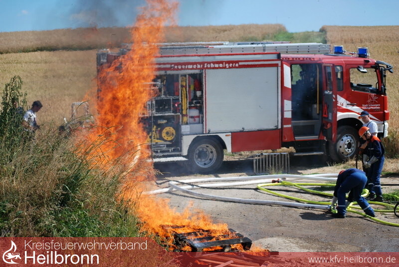Bild 1 + 2: ein Flächenbrand muss gelöscht werden