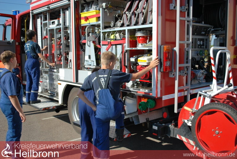 Schichtbeginn war am Samstag um 8 Uhr, und wie bei der Berufsfeuerwehr üblich wurde zunächst die Einteilung auf die einzelnen Fahrzeuge vorgenommen sowie die Regularien für die Schicht besprochen. Danach gingen die Jugendlichen zu den Fahrzeugen, auf denen sie eingeteilt waren und überprüften die Ausrüstung auf Vollständigkeit und Funktionsfähigkeit. Daran schloss sich eine praktische Unterrichtsstunde an.